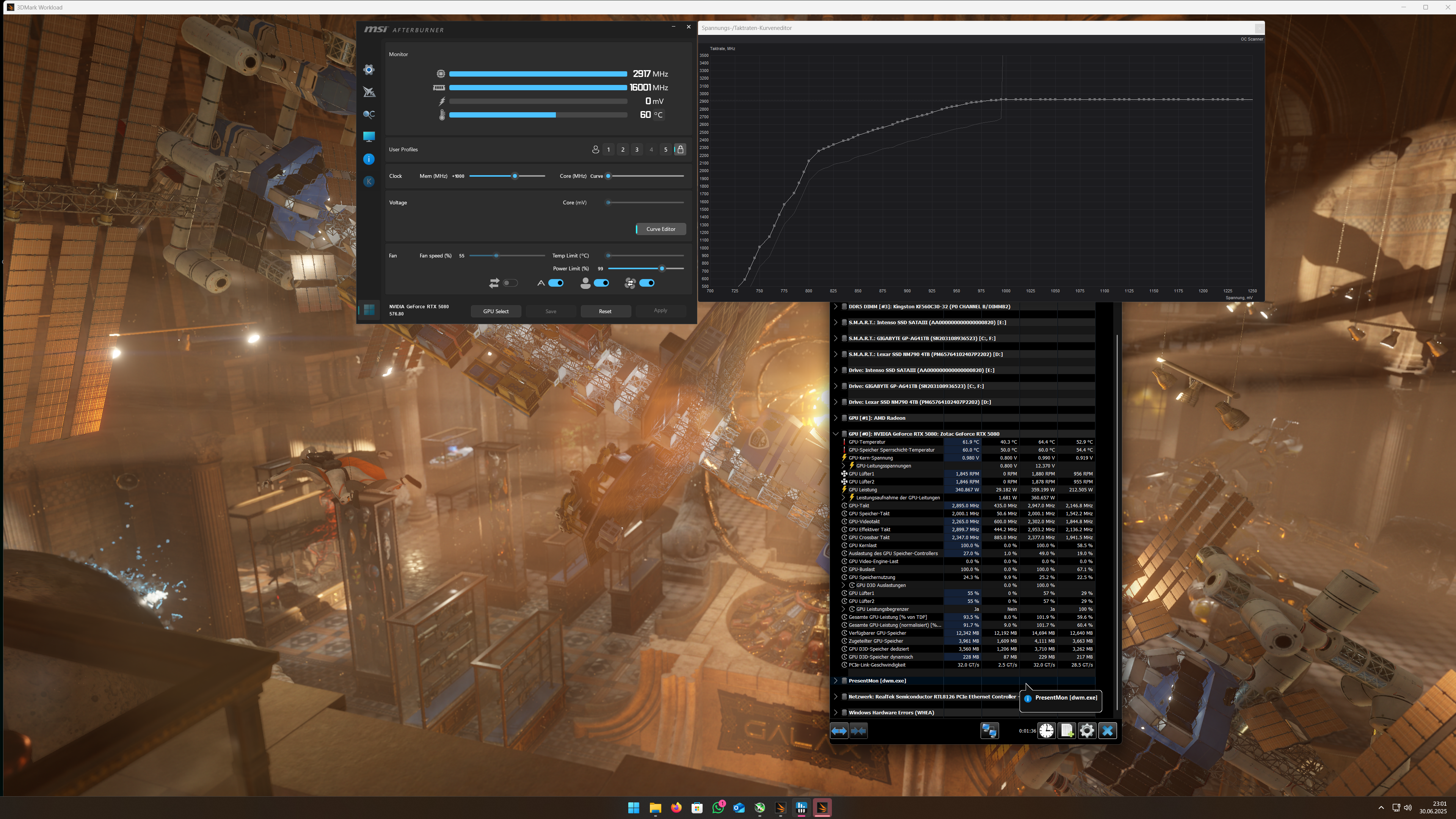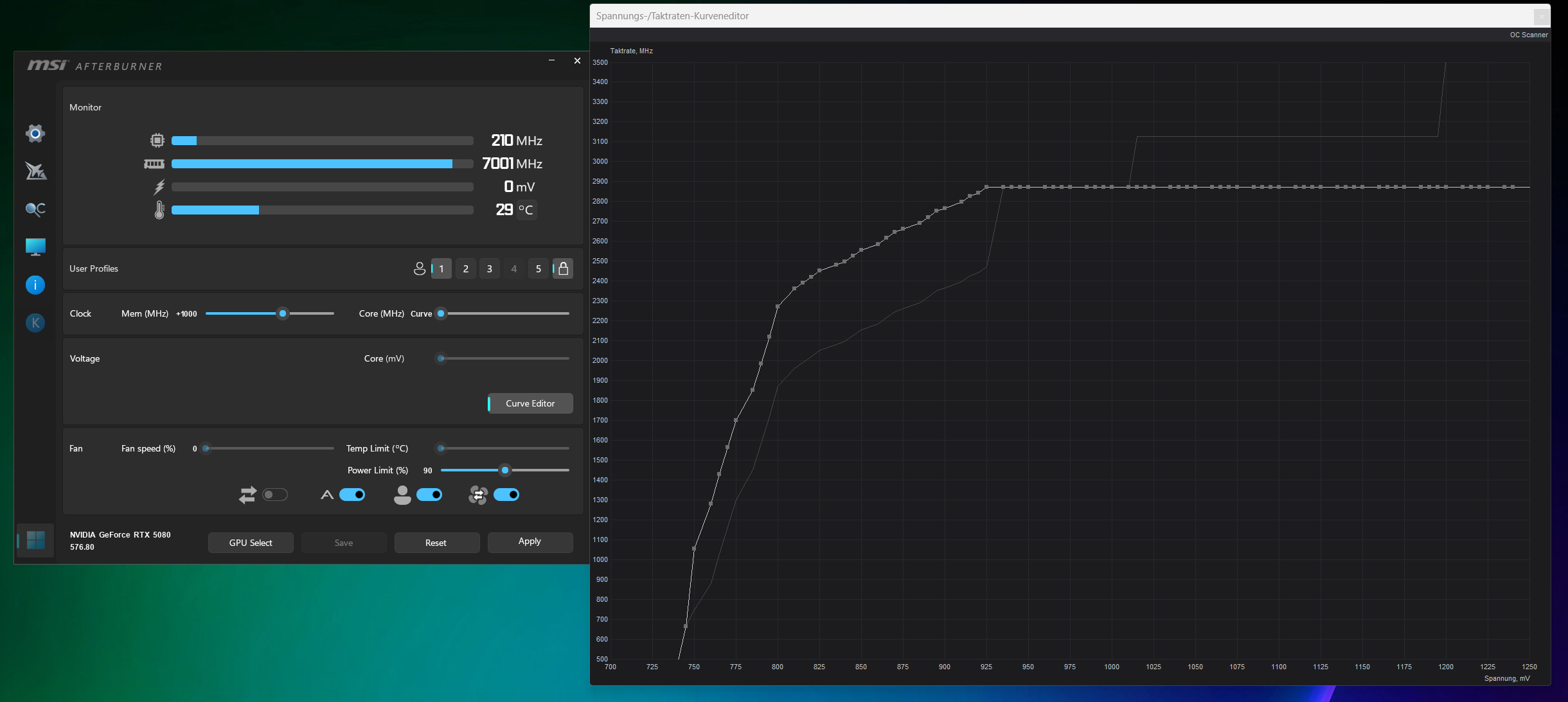 du siehst im curve optimizer die dünne linie, die zum kurvenschnittpunkt führt und eben in hwinfo aktuelle und maximale fps der gpu. leider ist im moment der screenshots unten immer die leiste gerade am ausblenden