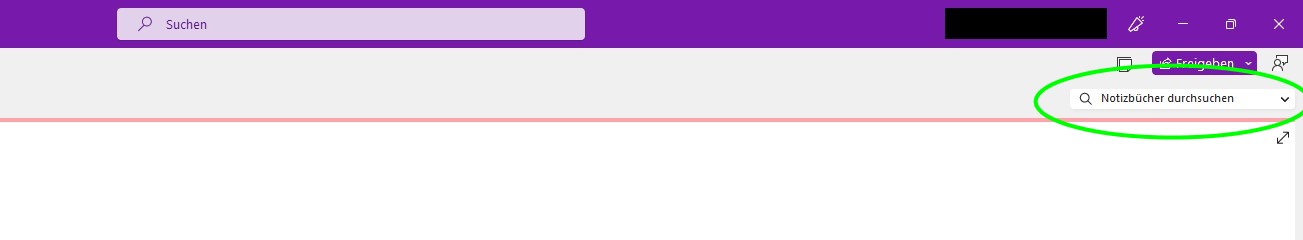 Bei OneNote im Vergleich habe ich zwar auch neu oben das globale Suchfeld.