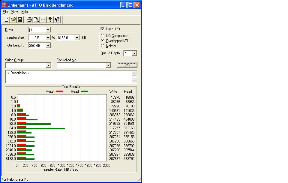 HDTune 3.50 spuckt mir immer nur Datenraten zwischen 160-170 MB/s raus. Dies liegt leider 40MB unter den erwarteten Werten.
