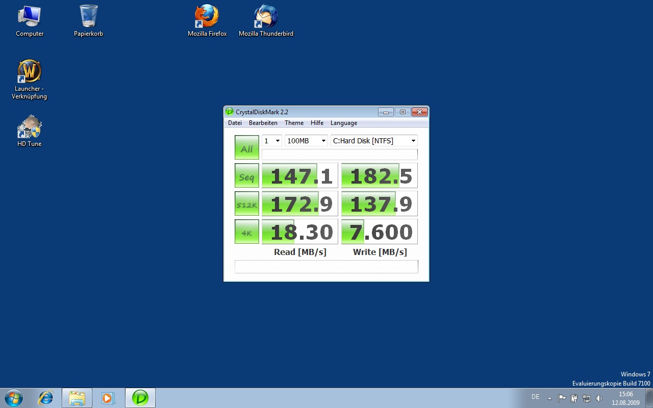ja ich hab frisch installiert. Hab eine Partition und das wars. Und ob ein Benchmark von einer OS Platte aussagekräftig ist oder nicht kann ich nicht sagen. Aber zumindest ist es nicht normal, das WoW ständig ruckelt. Ich hab vorhin nochmal die alte HDD reingesteckt. Dort sind die Ruckler nicht vorhanden.