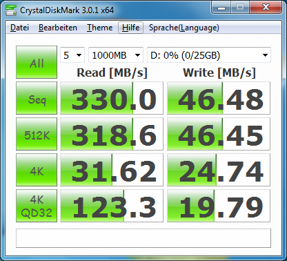 Die Werte sehen nicht schlecht aus vor allem beim Schreiben wenn ich da an meine Vertex 2 denke wird mir spei übel 140MB/s beim neuen System und jetzt dümpelts bei 80MB/s rum, schon geil wenns angeblich doch ein wenig mehr sein sollten.