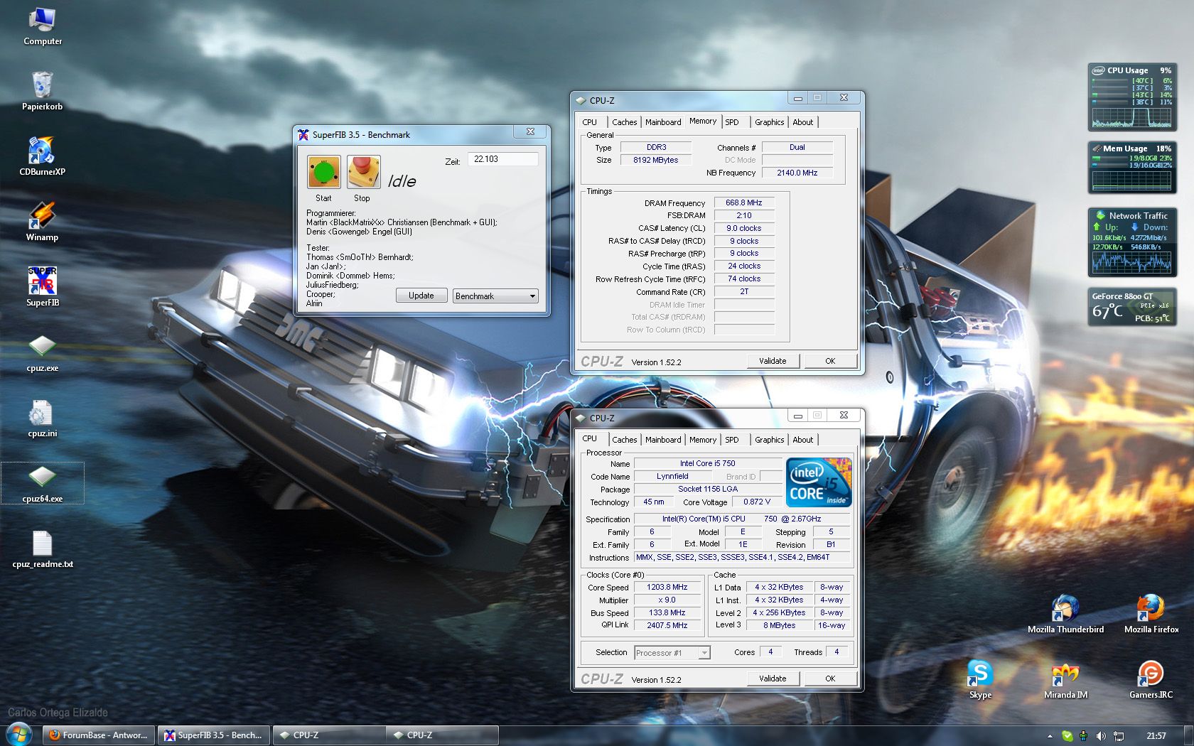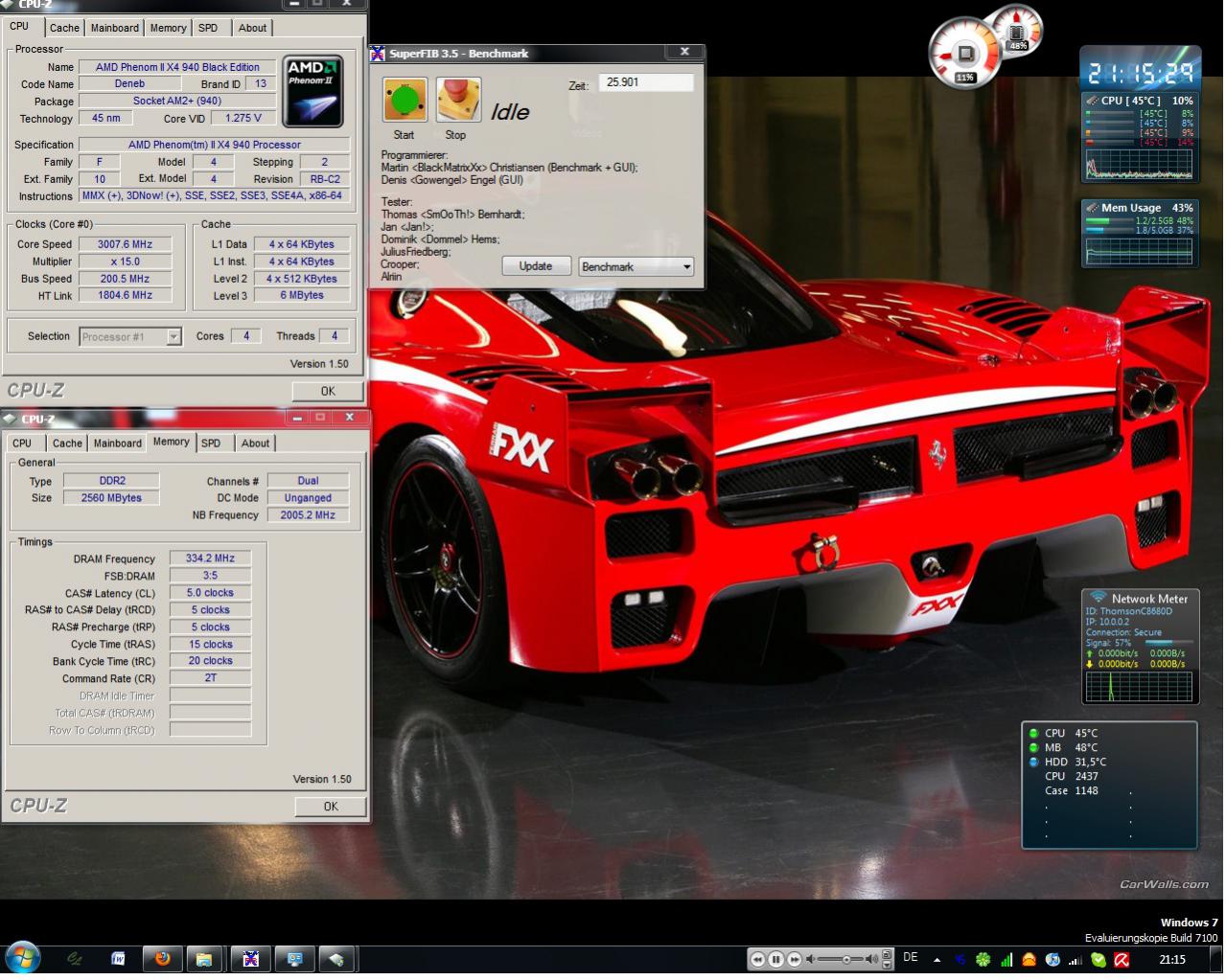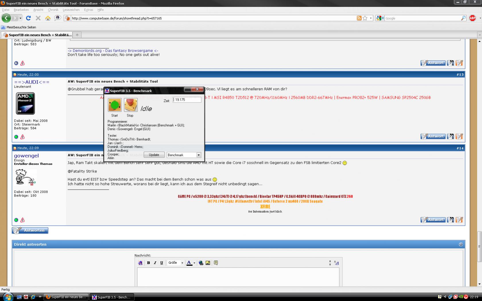 Bitte die Ergebnisse in folgendem Raster angeben! Im Screen muss ein Fenster mit Cpuz (Cputakt + Ramtakt) + dem SuperFIB Hauptfenster zu sehen sein!