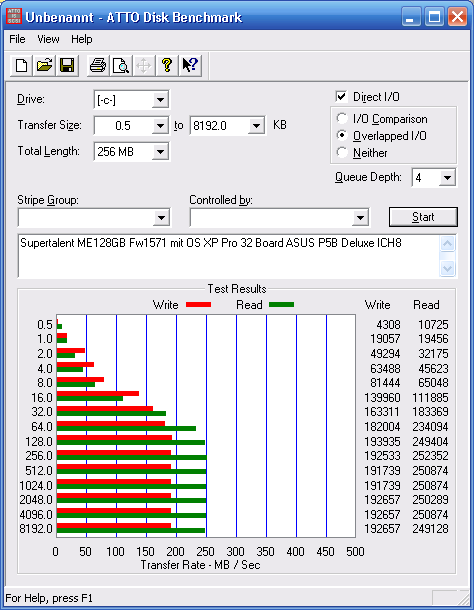 WOW! Die sind ja echt richtig gut. Die random write bei 4k sind wirklich spitze. Mit meinen MTRONs erreiche ich da nur 1,6 MB/s. Aber im read 4k ist sie etwas schneller ....