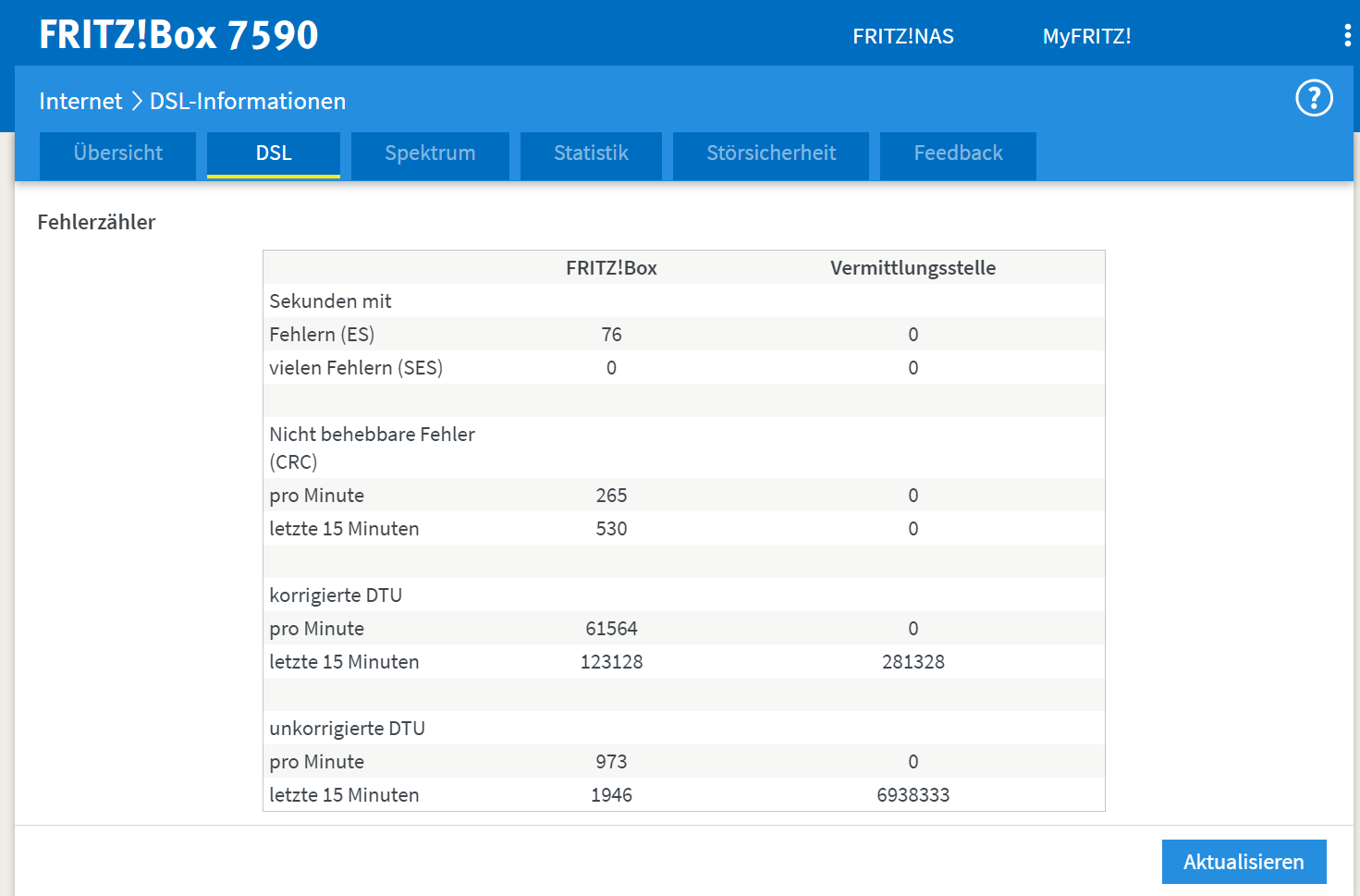 Die üblichen Tricks (Router resetten, Störsicherheit erhöhen, etc.) habe ich schon probiert und ergaben keine Besserung, außer, dass die CRC-Fehler weniger geworden sind. Abbrüche sind gleich geblieben. Das Problem hatte ich letztes Jahr schon, es wurde leider nicht besser.