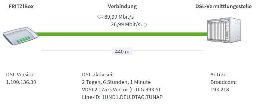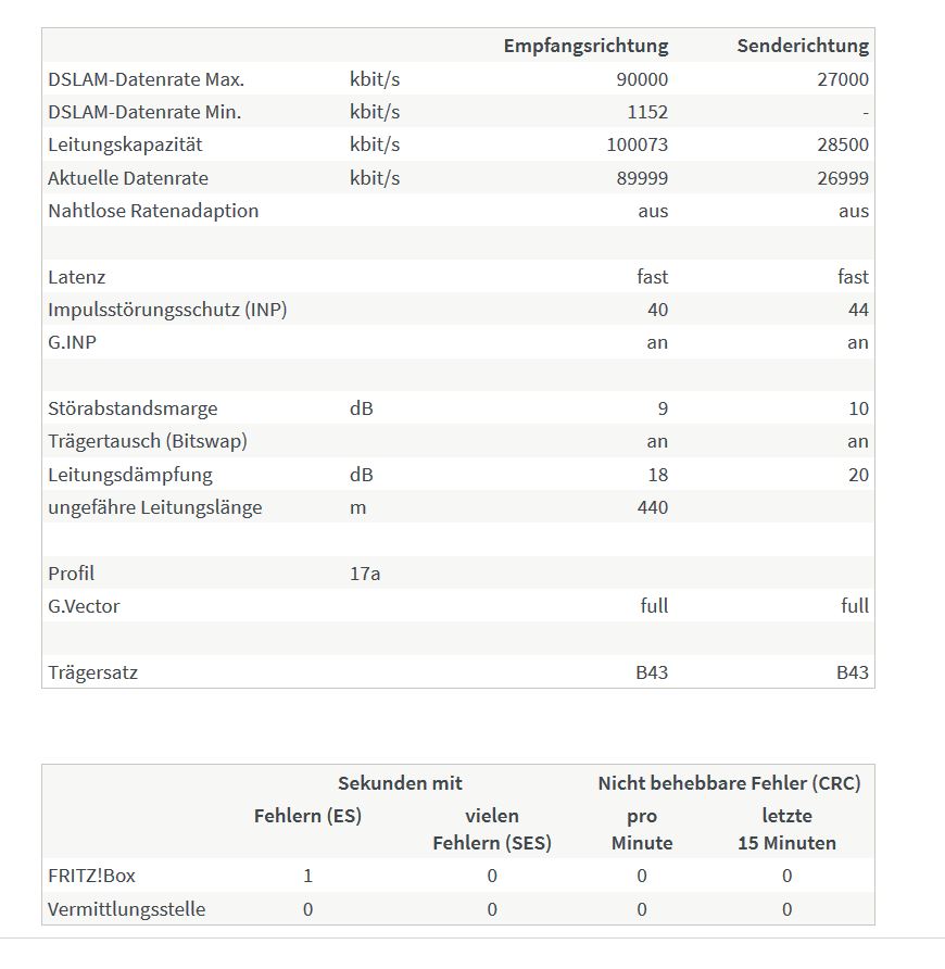 Das interessante ist, der Kollege von dem ich die Fritzbox habe, hat diese ausgemustert, da sein Internet nicht stabil lief. Seine Aussage war, dass die Leitungen auf Supervecoting Profil 35b umgestellt wurden und das Profil 17a nicht mehr unterstützt wird. Mein Onkel im Nachbarort hatte ein ähnliches Problem mit 1&1. Beim ihm kam es immer zu Verbindungsabbrüchen. Abhilfe schaffte auch nur eine neue Fritzbox 7530.