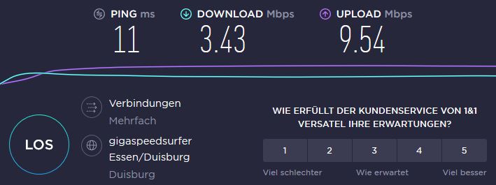 ich nutze einen DSL 50 Anschluss von 1&1 an einer Fritzbox 7430. Bis März kamen dort nur ca. 25 MBit/s an, lief aber seitdem mit 50 MBit/s. Letzten Monat gabs ein Schreiben von 1&1, dass unsere Leitungen modernisiert werden. Seit zwei Wochen kommen jetzt nur noch 4-6 MBit/s als Downstream an. In der Fritzbox wird jedoch alles korrekt angezeigt. Der Upload und Ping sind übrigens unverändert und entsprechen Leistungen von DSL 50.