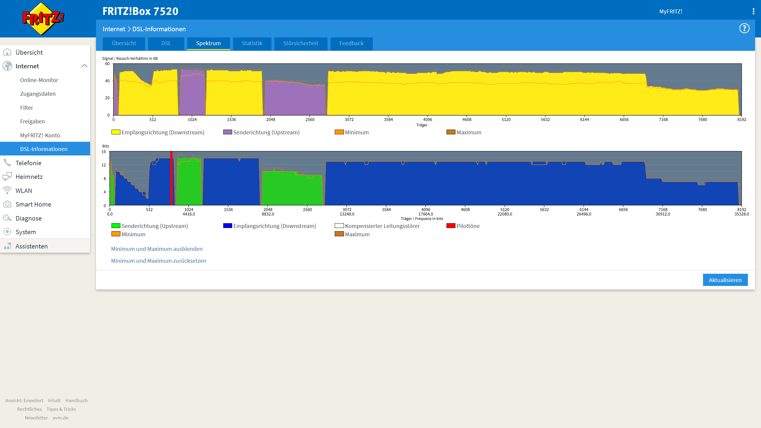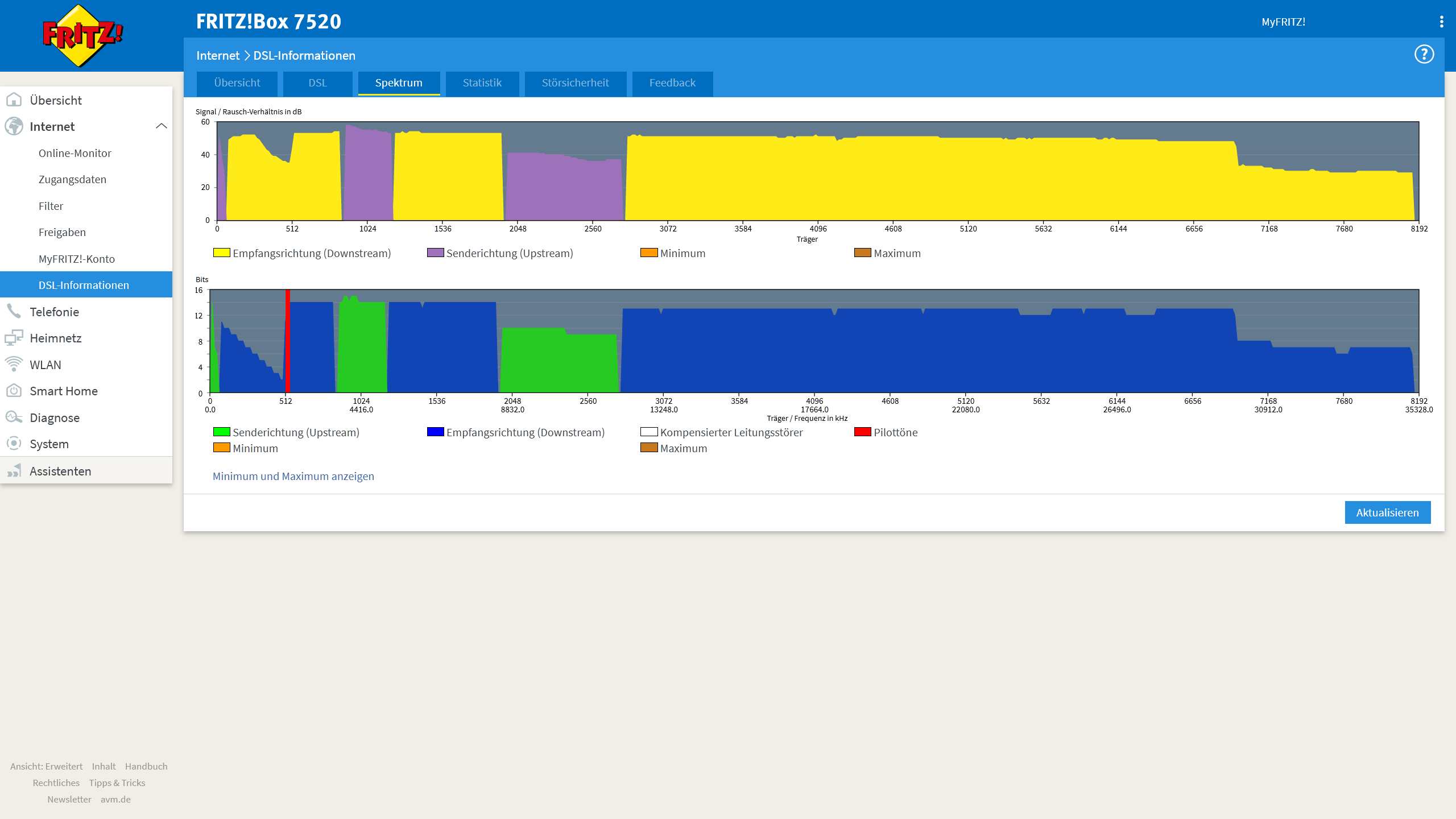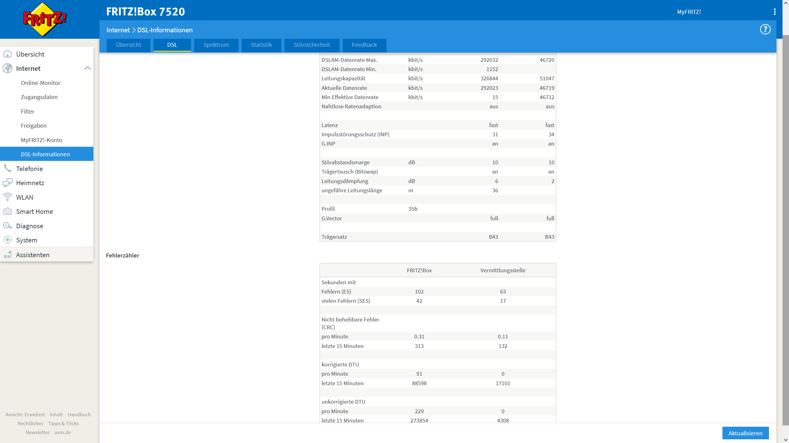 | Aktuelle Datenrate | kbit/s | 287432 | 46719 |
