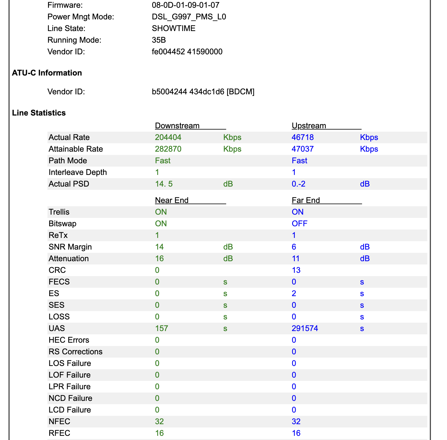 Vanguardboy schrieb:Seid die Broadcom Version von 12.4.127 auf 12.4.120 geändert und nun hab ich irgendwie wieder alle 2 bis 5 Tage eine Unterbrechung . Der anschluss hat keine ES , CRC oder unkorrigierte DTU Fehler.