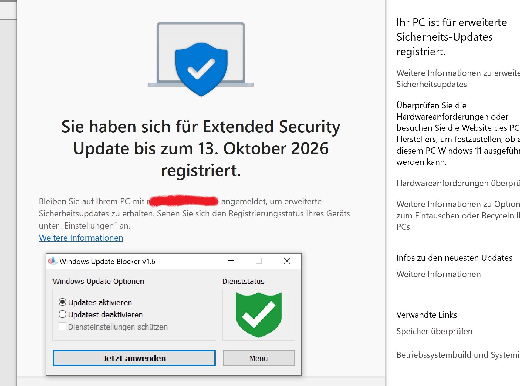 Der Link in Windows Update war bei mir abhängig von den ESUEligibility Keys. Die gab es eine ganze Weile gar nicht, dann mit den falschen Werten. Auf 2 bzw 1 gesetzt und schon war der Link auch da.