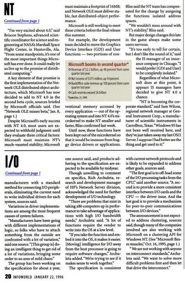 Macht jetzt aber keinen großen Unterschied für einen Schüler dieser Klassenstufe in den 90er Jahren. Die Diskussionen zu NT4 gab es ja schon lange vor dem Verkaufsstart, und da warst Du mit an Sicherheit grenzender Wahrscheinlicnicht in den entsprechenden groups nicht aktiv.