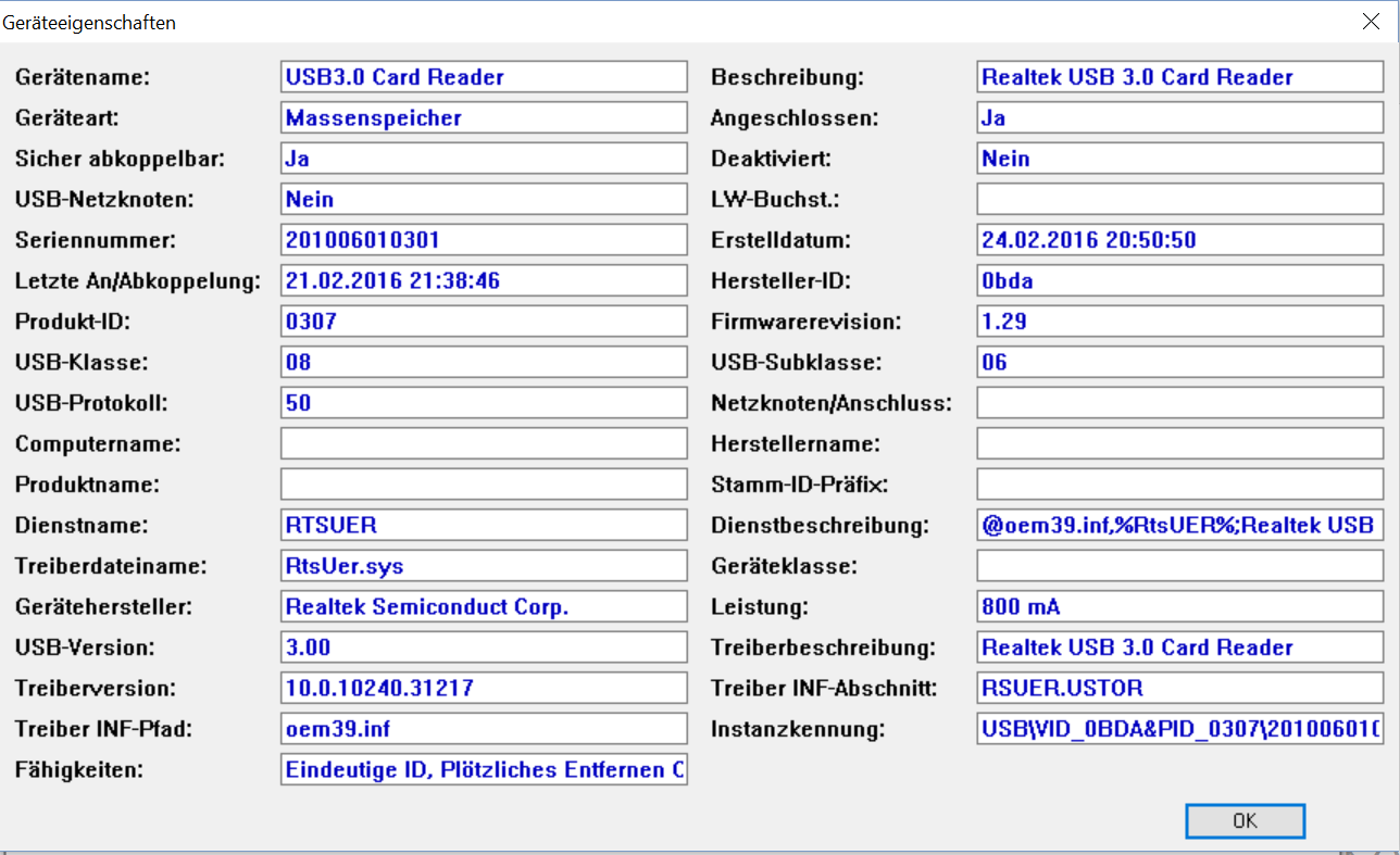 Ich habe mit einem das Tool USBDevice runtergeladen da ist selbst nach dem Fehler der Card Reader noch Aktiv.