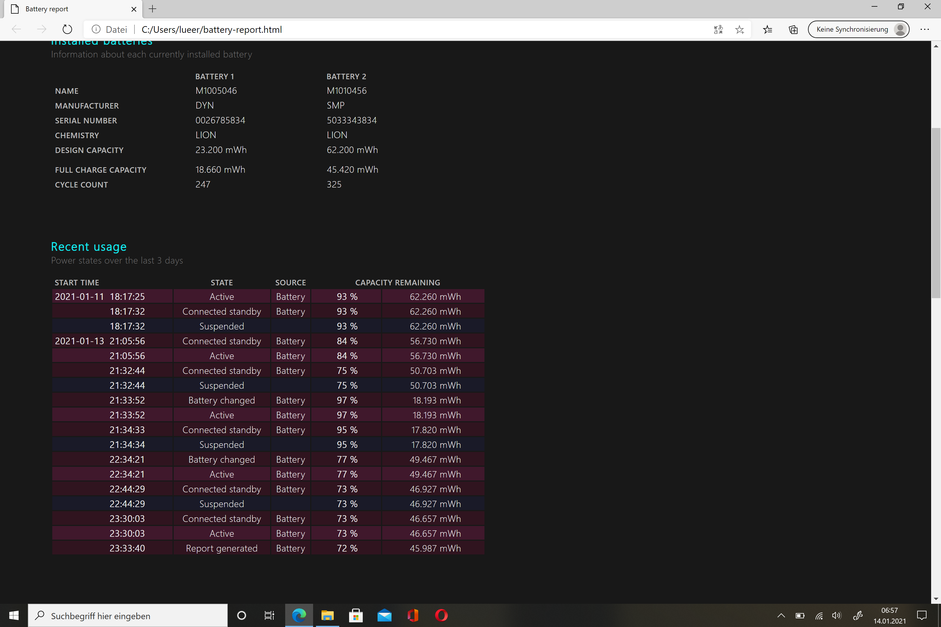 Kenn mich mit den Batterie-Reportangaben nicht recht aus. Ladezyklen und Kapazität.