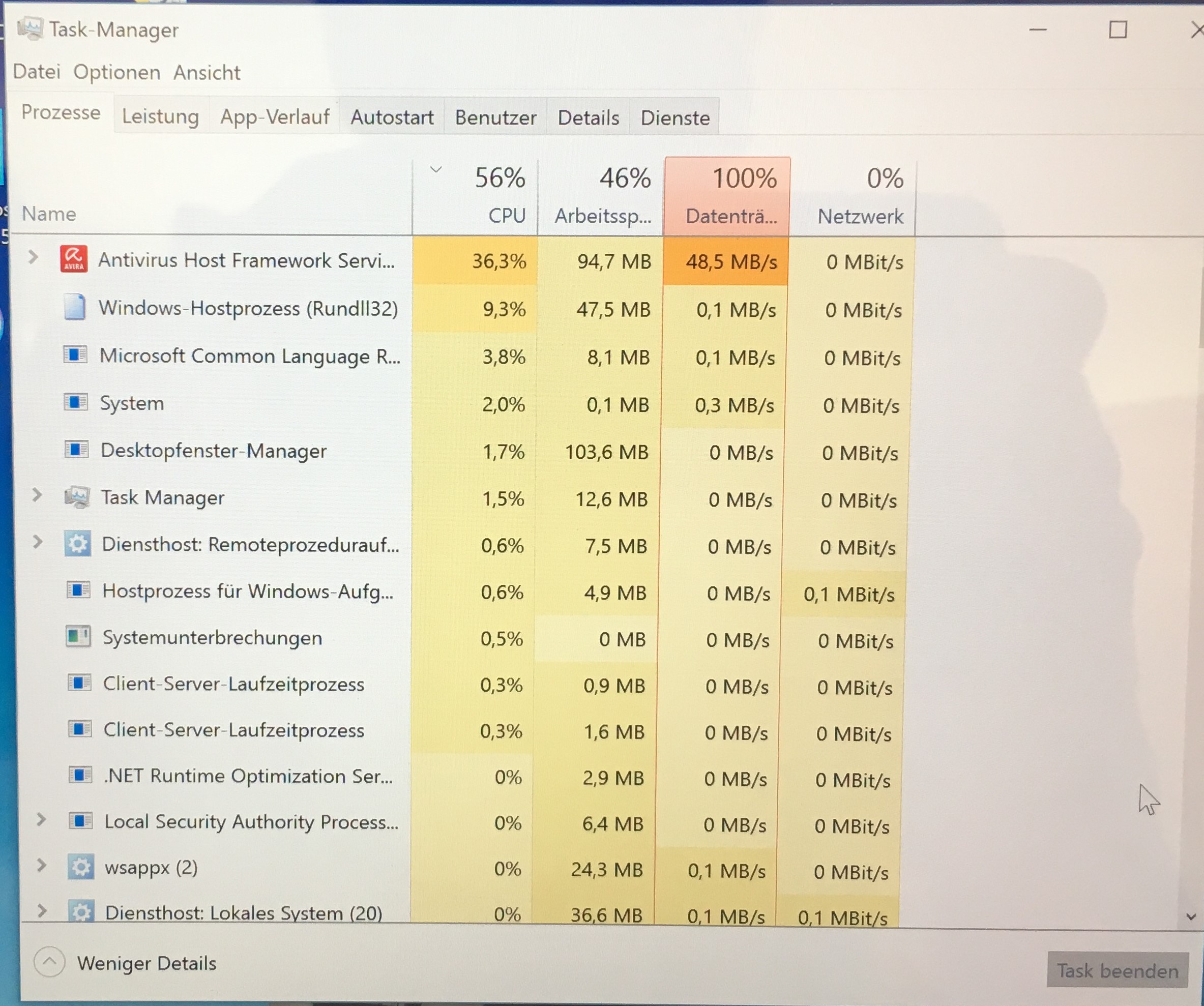 ich hab mir vor etwa zwei Monaten ein Surface Book i7, 256gb, 8gb ram und dGpu gekauft. Doch jedes mal wenn ich das SB zum laden anschließe drehen die Lüfter voll auf (dies geschieht 10sec nach einstecken des Kabels). Wenn man dann im Taskmanager nachschaut sieht man das die CPU und auch die SSD voll ausgelastet sind (Siehe Anhang).
