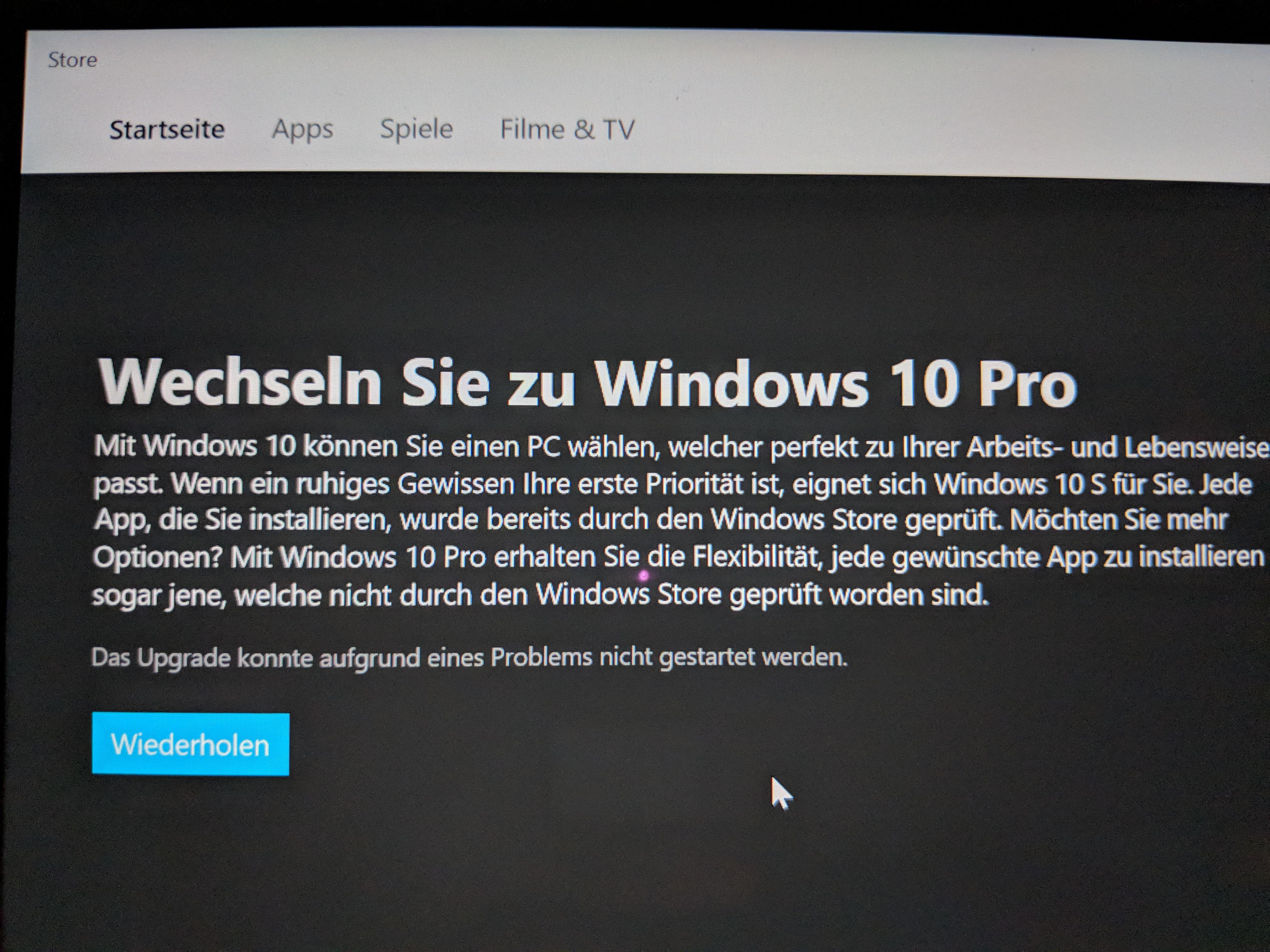 richte gerade meinen neuen Surface Laptop ein und wollte direkt mal von S auf Pro updaten. Sollte laut einem Hinweis im Store auch kostenlos möglich sein.