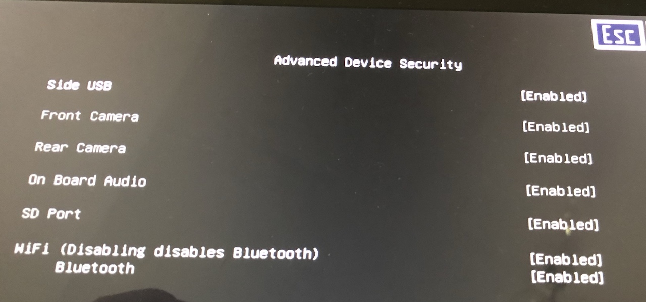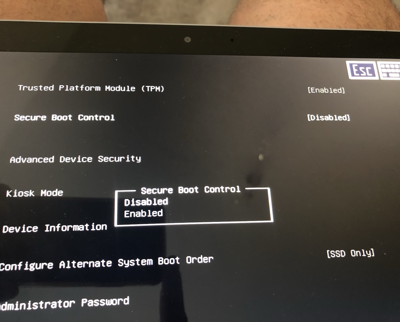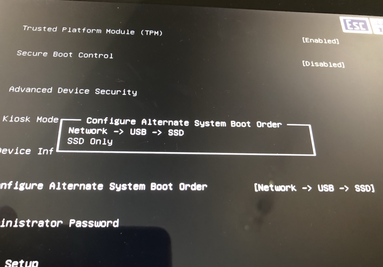 Adcanced Device Security: "Network -> USB -> SSD" und auch nur: "SSD Only"