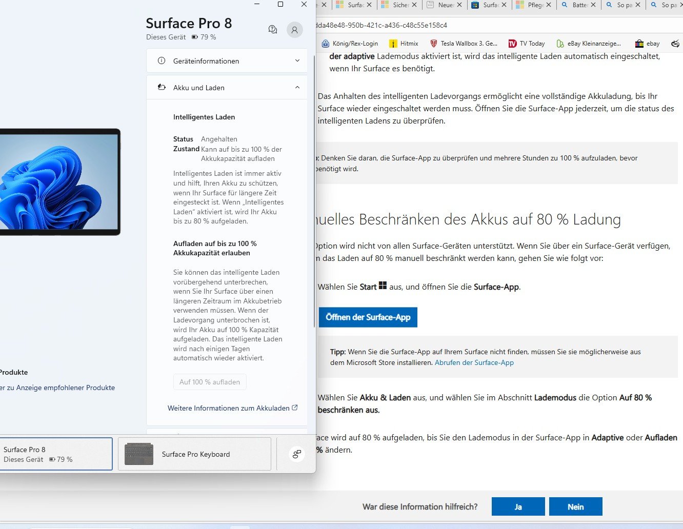 2.) Wieso ist der Akkuschutz deaktiviert und wie begrenze ich dies auch beim Stift auf 80% bzw. 50%? Es ist ausgegraut (s.Abb.)