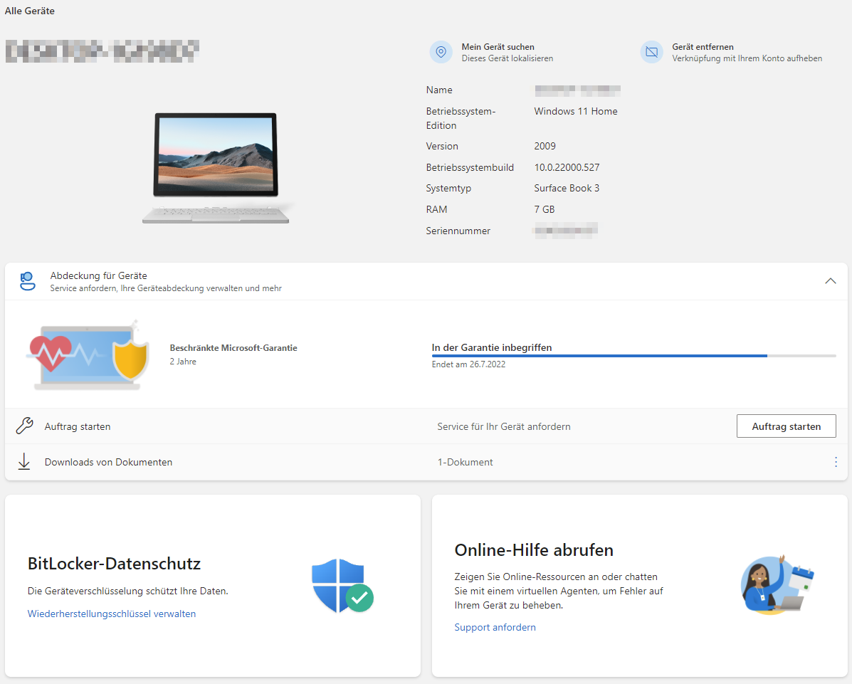 Ich habe ein SurfaceBook 3, gekauft 26.07.2020. Gestern habe ich festgestellt das das Display ein Haarriss in der oberen linke ecke hat. Wie es dazu gekommen ist, keine Ahnung. Ohne Schuldzuweisung oder so. Ich benutze das Gerät sehr selten und nur zuhause. Ich kann ausschließen das es von mir stammt. Daher gehe ich davon aus das der Sprung durch Spannungen entstanden ist. Das Surface kann sehr warm werden und durch die Ausdehnung kann ich mir sowas vorstellen. Display und Touch Funktionieren. Aber unabhängig von der Schuldfrage verstehe ich die Microsoft Garantie (Geräteservice und -reperatur) nicht wirklich. Hab bei MS geschaut ob ich noch Garantie habe. Dort steht das ich bis 26.07.2022 Beschränkte Garantie habe.