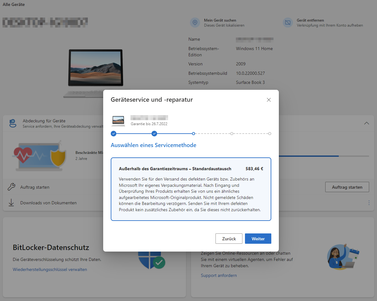 Wenn man nun drauf geht steht im Prozess das es 583,46€ kosten würde wenn es Außerhalb des Garantiezeitraums ist. Jedoch ist das so allgemein beschrieben das ich das nicht eindeutig finde. Also bin ich denn in der Garantie oder nicht? Werden die kosten übernommen oder müsste ich dann 583,46€ zahlen? Wird man vor Austausch gefragt? Wird alles nicht beschrieben. Also habe ich Versucht die Hotline von MS anzurufen um zu erfragen was das bedeutet. Jedoch ist die Hotline ein Witz und eine Computerstimme führt letztendlich ins nichts. MS Hotline: 0180 6672255