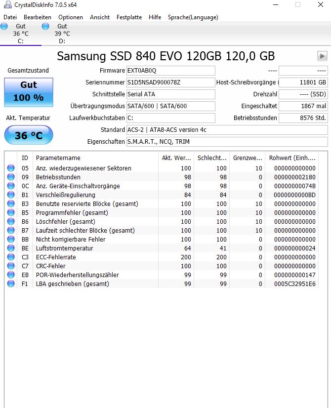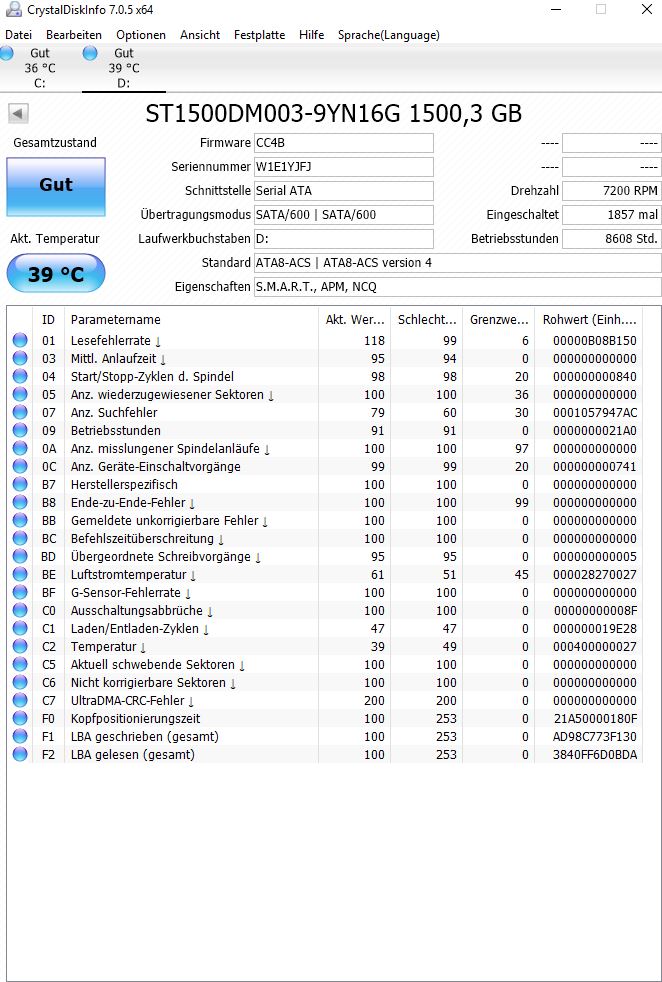 Mein System und damit auch die Festplatten sind gerade mal 4 Jahre alt, weswegen ich mir unsicher bin, ob es wirklich an den Festplatten liegt.