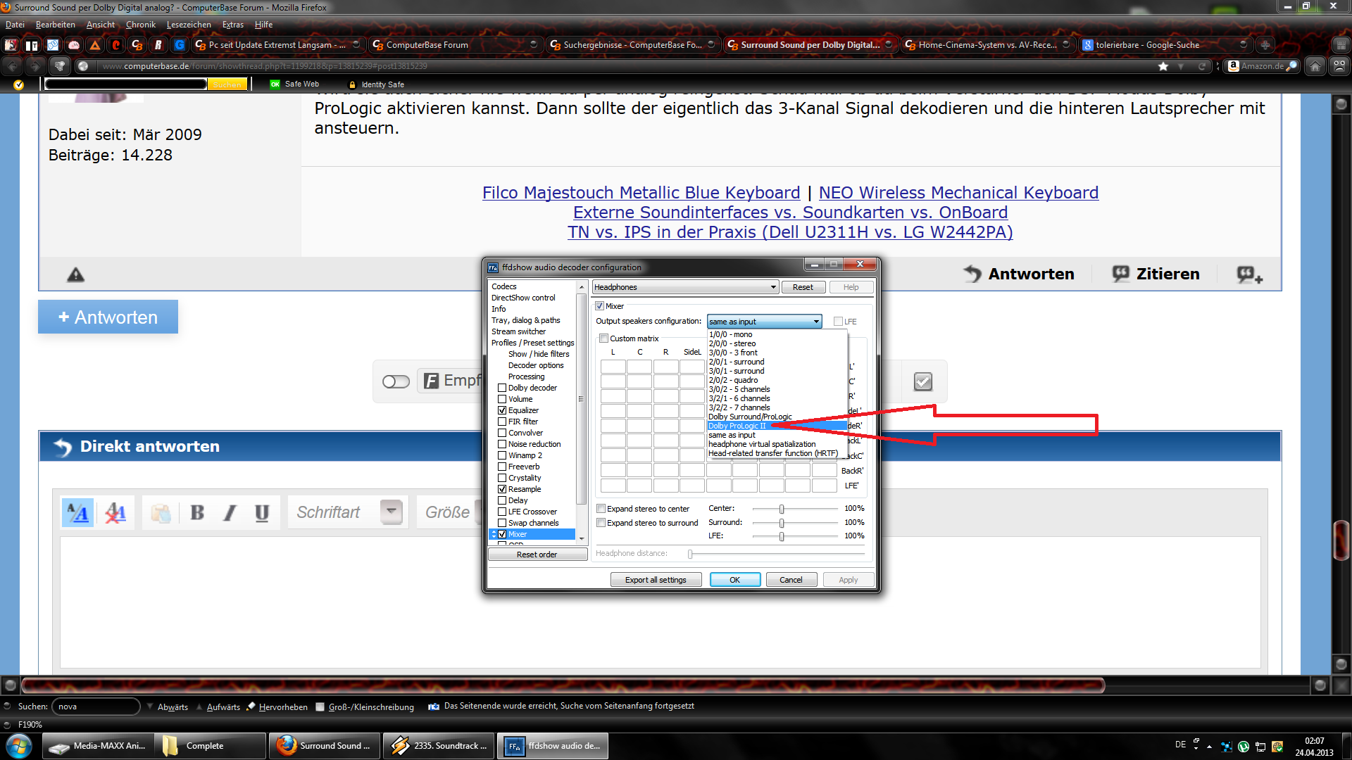 Die Soundqualität ist trotzdem ganz gut. Kann man irgendwie mithilfe eines Codecs Sourround Sound in Dolby Digital analog umwandeln, so dass es die Anlage verstehen würde?