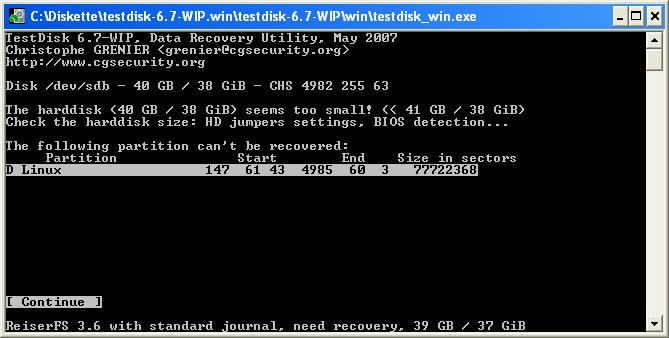 Ein paar Anmerkungen: es ist sicher eine gute Idee mit einem Image zu arbeiten (wenn man den nötigen platz dafür hat) um auf der Disk nichts zu zerstören, dies ist in dem Link von Fiona ja auch beschrieben.