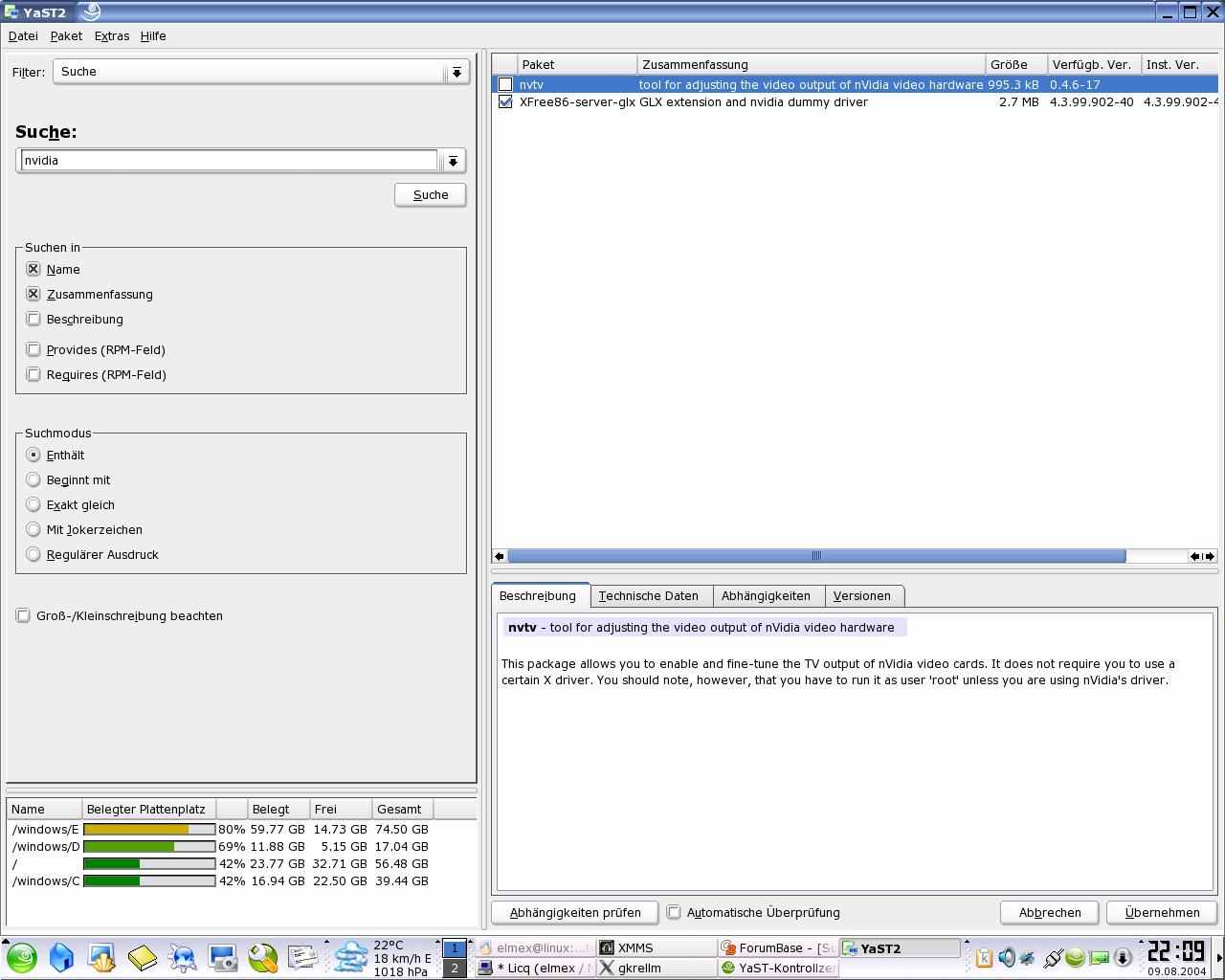 Ich hab zuerst mittels Yast den SuSE-Treiber nochmal installiert, per YOU.