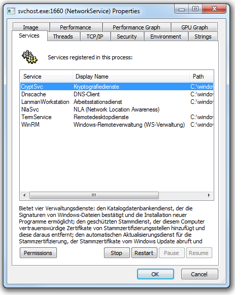 Dort siehst welche Services sich hinter dem svchost verbergen.