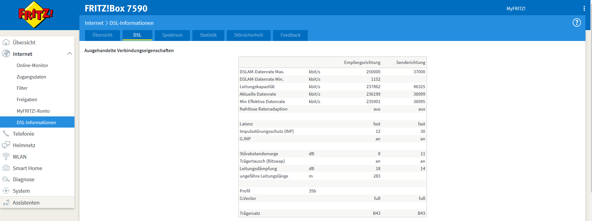 Anbei noch ein paar Screenshots vom Speedtest und der Fritzbox.