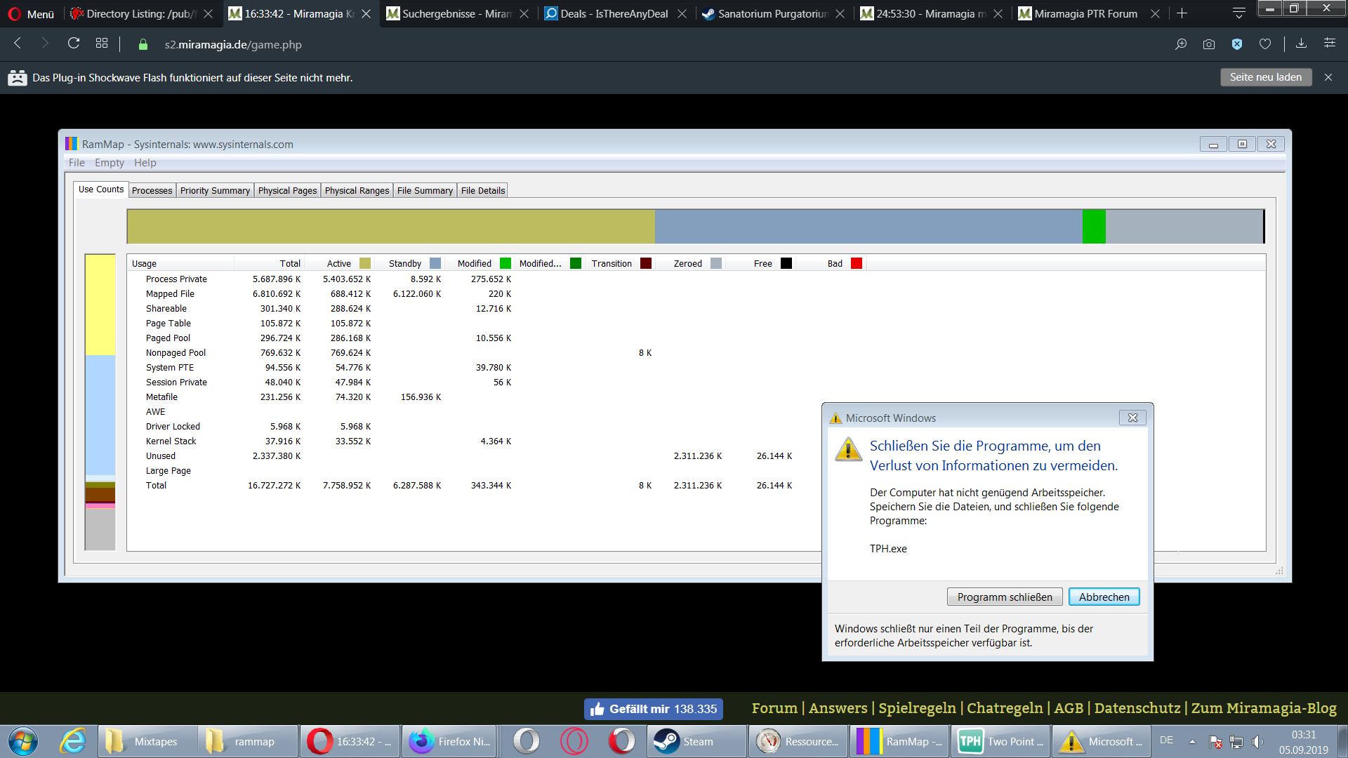 Hallo allerseits. Ich habe mittlerweile ein Problem mit meinem Windows 7, denn seit ich Two-Point Hospital spiele, verträgt sich mein 16GB großer Arbeitsspeicher nicht mehr mit den drei gleichzeitig offenen Operas und dem Firefox.