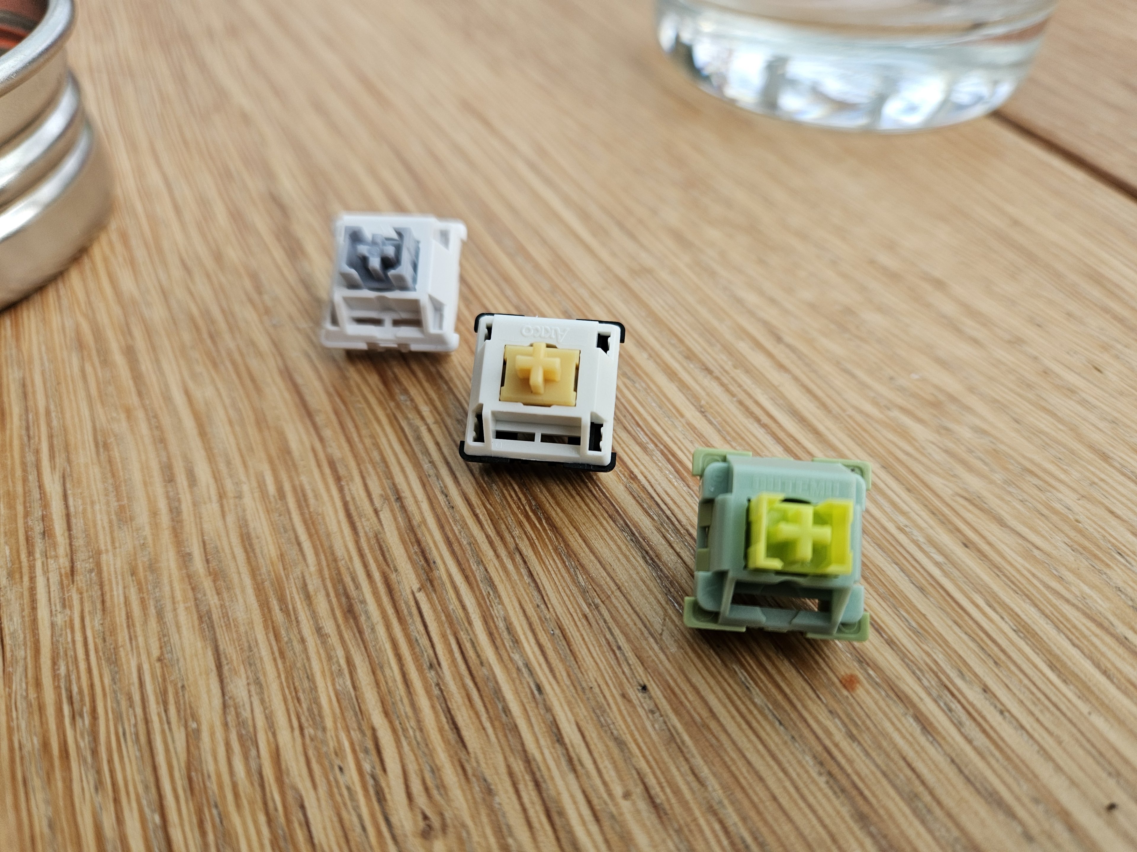 Der Verkäufer war echt top und hat mir noch einen Satz Lavender Purple Pro V3 dazugelegt. Die taktilen Schalter gefallen mir deutlich besser und ich erreiche damit leichter meine maximale Schreibgeschwindigkeit von ca. 130 wpm. Idealerweise würde ich nun nach Switches suchen, die noch eine geringere Betätigungskraft und geringeren Vorlaufweg haben, als die Purple, dazu noch leiser sind. Denke bspw. an die V3 Cream Blue Pro Switches oder Cherry MX Silent Reds.