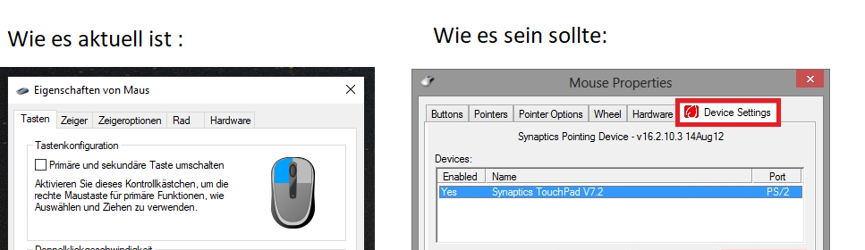 Ich habe echt alles mögliche versucht um den Synaptics-Reiter als auch das Synaptics-Icon herzustellen, das halbe Internet durchgesucht und mehrere Lösungsvorschläge aus verschiedenen Foren probiert: leider kein Erfolg gehabt! Ich habe die folgende Lösungen versucht: