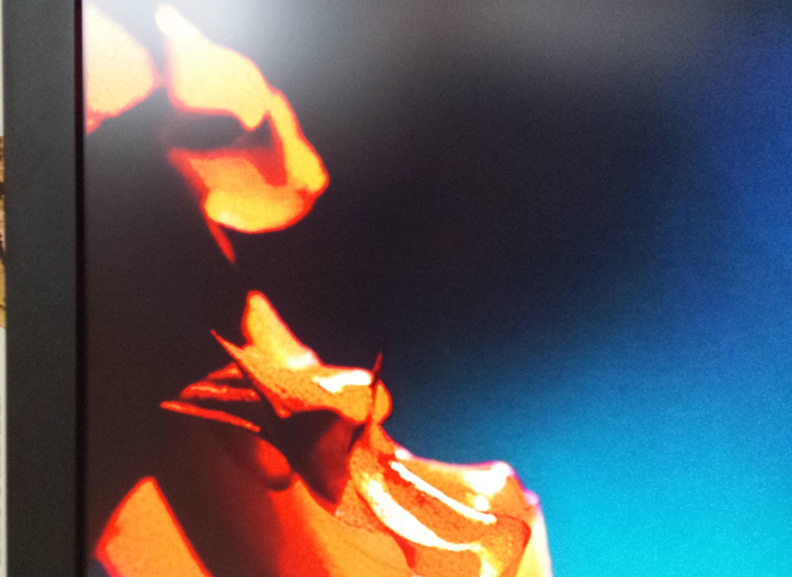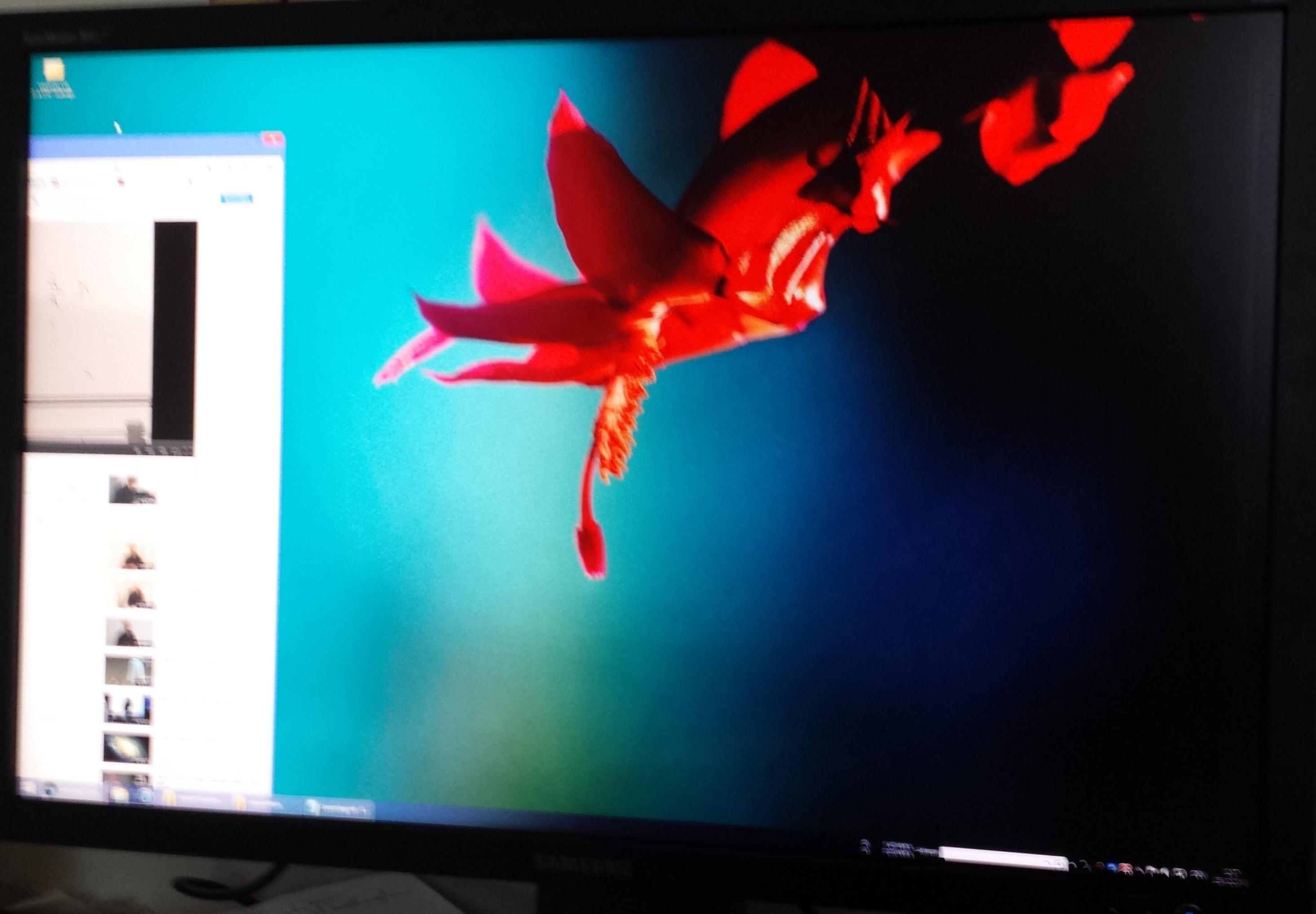 Das Bild ist dunkel und unscharf auf einer Seite des Monitors, wobei die Grenze nicht gerade ist, auf der anderen normal. Auf der Anormalen wird in der Nähe des Rands alles mehrmals dargestellt und die Maus ziet "schlieren".