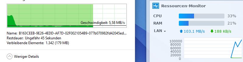 Beim Kopieren auf das NAS fällt auf das es im vergleich zu testberichten sehr viel langsamer ist.