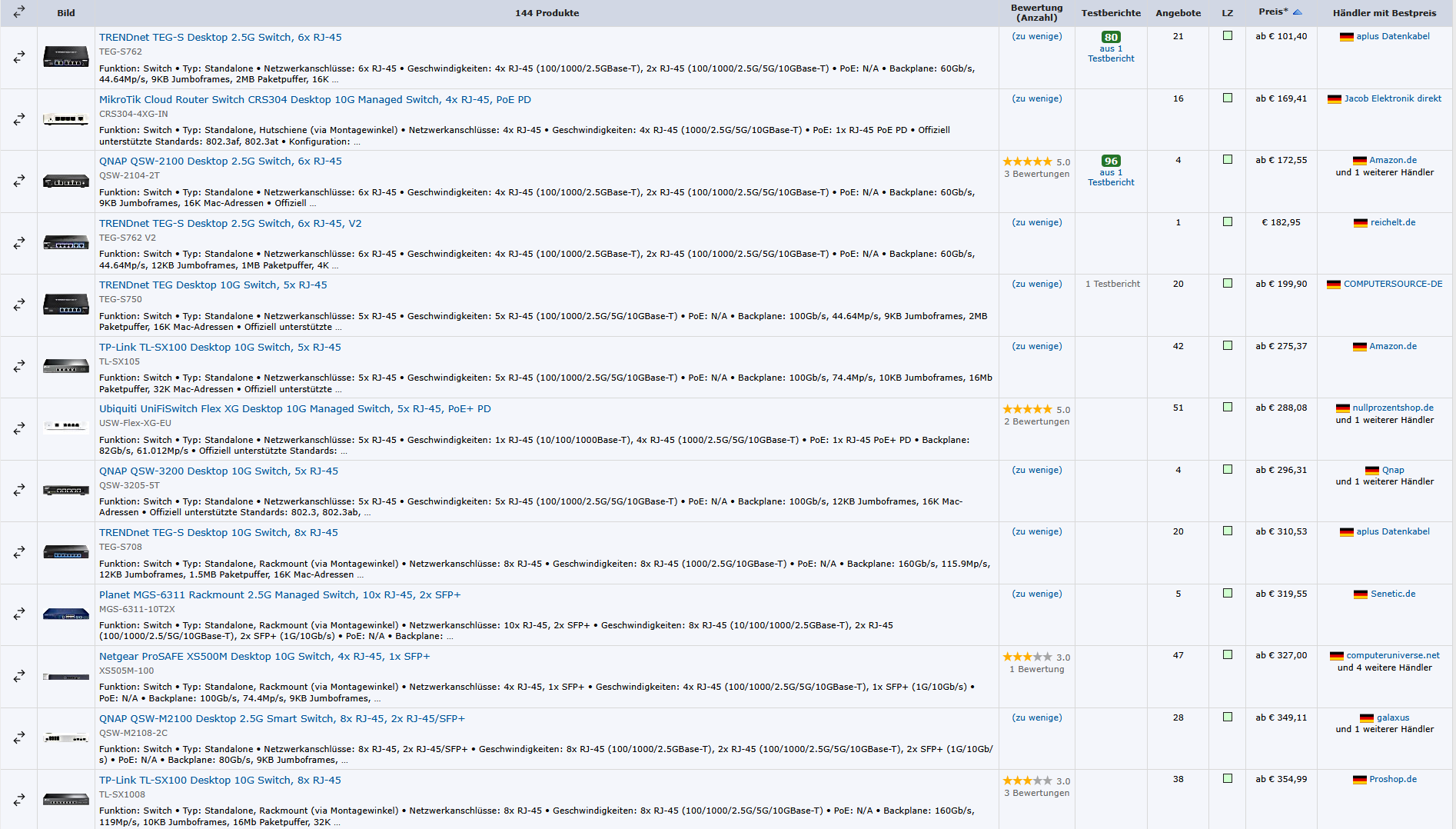 Ja, wer 8x10GbE, am besten auch noch managed mit Link Aggregation will, muss deutlich mehr ausgeben, wenn auch noch sehr wenig im Vergleich zu 25GbE+, aber es ist zuletzt deutlich günstiger geworden.