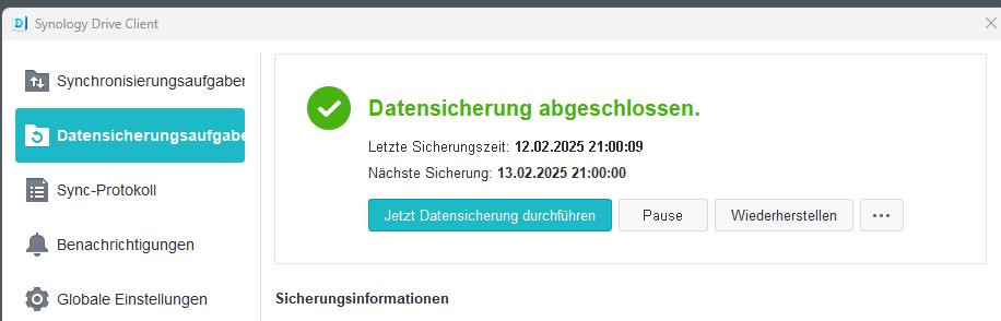 Synology drive client - Weitere Sicherung starten aber wie?