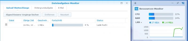 Wenn der Laptop direkt per LAN Kabel mit der DS verbunden ist habe ich ca. 50MB/s.