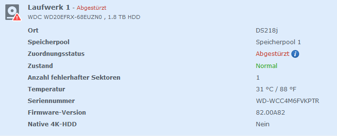 Doch seit heute blinkt meine Status LED orange und der meiner Festplatte ist permanent orange. Ich habe noch Zugriff auf alle meine Daten, allerdings sagt mir das Synology das mein Volumen beschädigt ist.