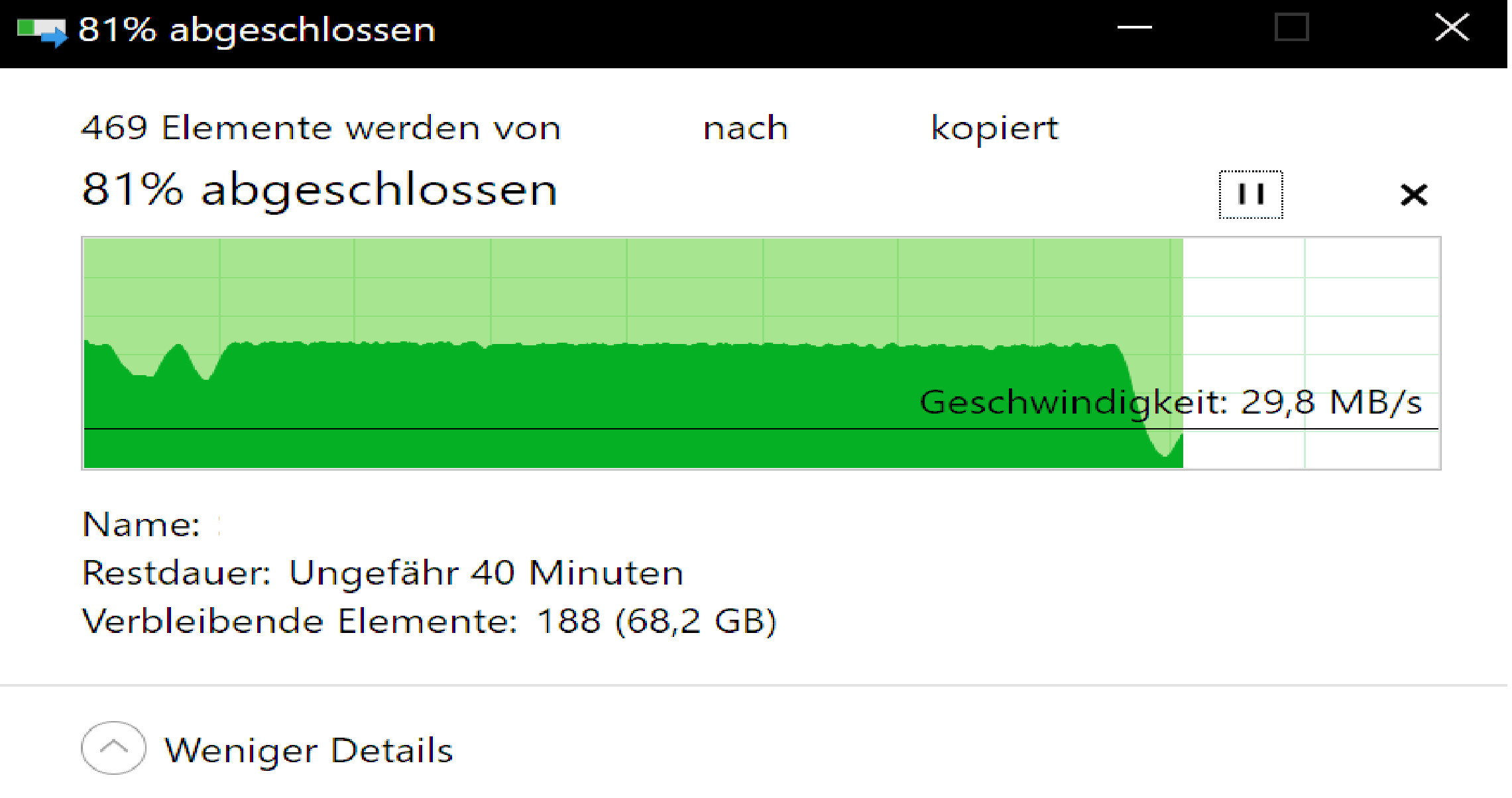 Wenn man einen 2. Kopiervorgang startet laufen beide mit 5MB/s also die Verbindung ist dann dauerhaft verlangsamt.