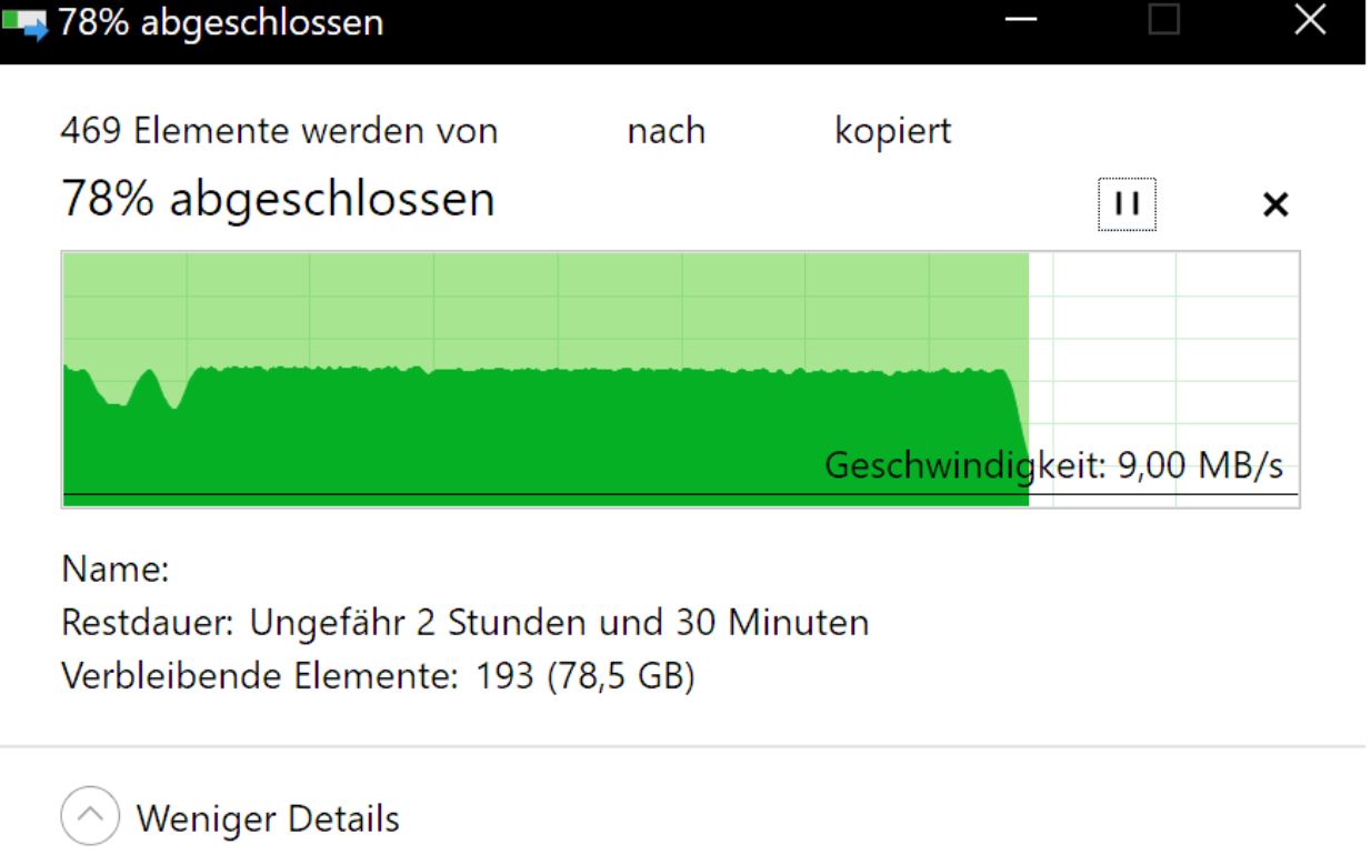 Der Kopiervorgang von meinem Windows PC drosselt von ca. 97MB/s auf ca. 9,7MB/s