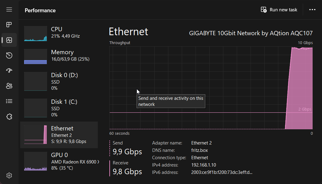 Bei mir ist das NAS mit seinen 4 Kabeln angeschlossen am Switch.flode schrieb:SMB3 Multichannel ist eine Wohltat für die Transferraten zu meinen Rechnern mit 2,5Gbit Ethernet (gerade getestet), vorallem weil die ganzen Synology Modelle nur selten 10Gbit Anschlüsse haben.