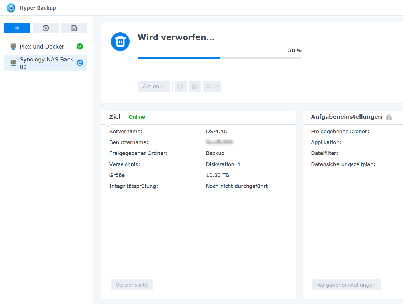 2. NAS-Backup: DS120J mit 1x 12TB = 10.8TB laut Speicherpool.