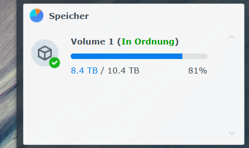 1. NAS-Quelle: DS1515+ mit 5x 3TB (RAID5 mit Datenschutz) HDD = 10.4TB laut Speicherpool