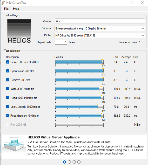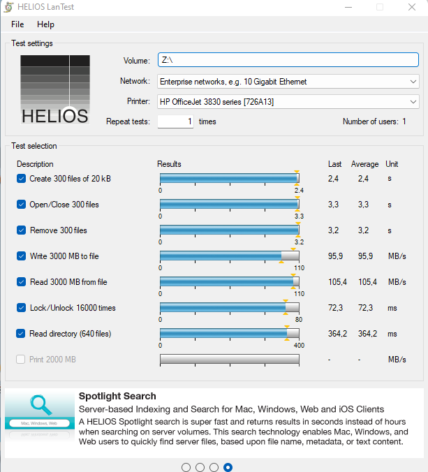 Ich habe jetzt einmal von einem Computer aus per Helios LAN Test die Geschwindigkeit gemessen, in dem ich auf einen freigegeben Ordner der NAS verwiesen habe. Was sagt ihr zu den gemessen Geschwindigkeiten? Sind diese ok?