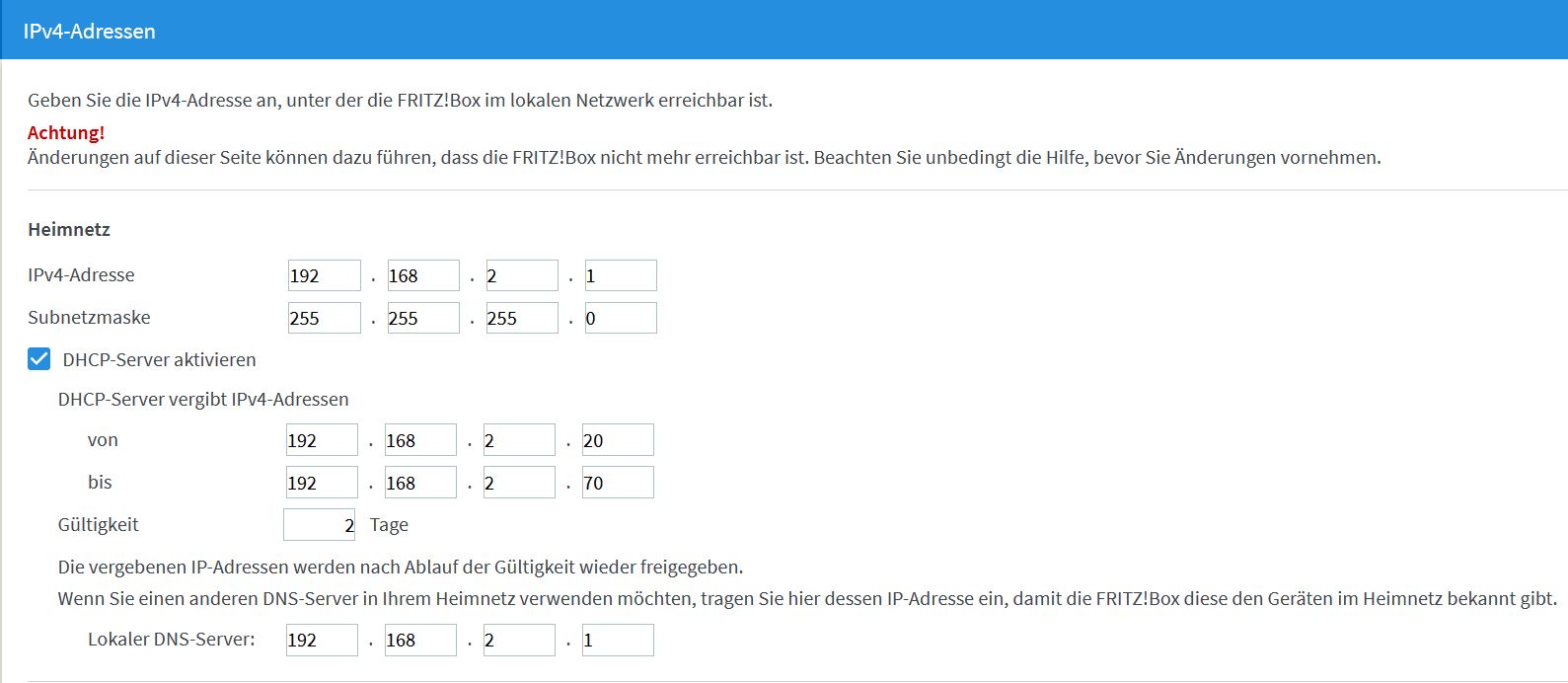 Problem: Wenn ich das Kabel für 192.168.2.3 ziehe, dann geschieht Folgendes: In der FB wird nun die ehemalige 192.168.2.2 zu 192.168.2.3 geändert. Warum ändert sich die IP-Adresse?