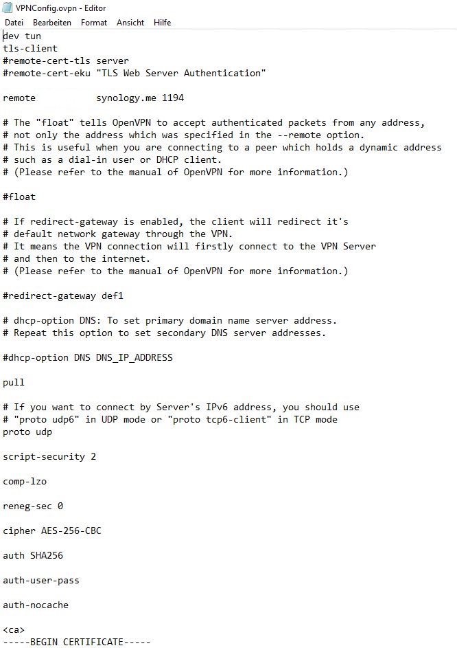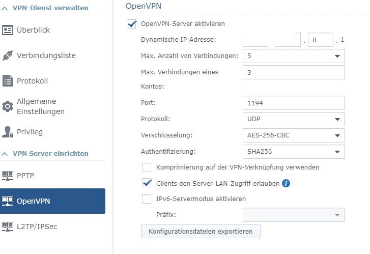 eine Synology NAS wurde ersetzt und OpenVPN nach Anleitung eingerichtet und die Konfiguration und Zertifikat habe ich exportiert.