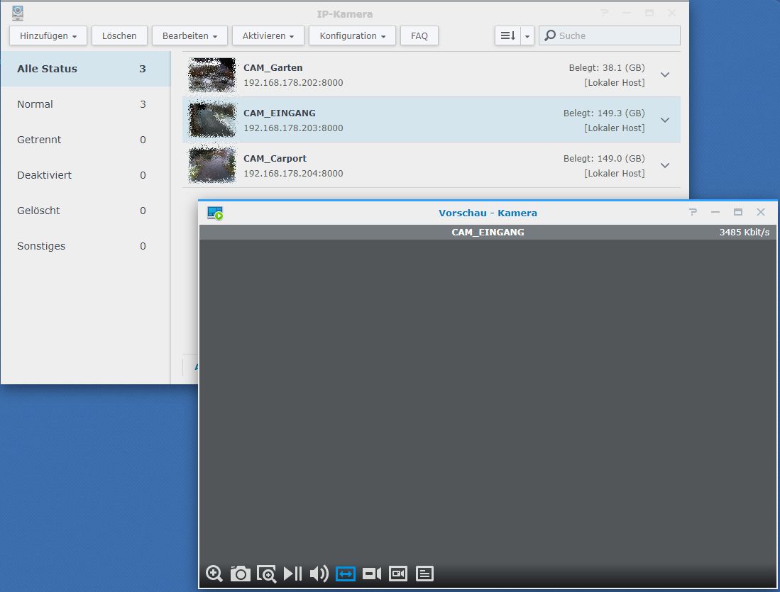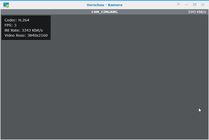 Innerhalb der Live-Ansicht und der Vorschau in Synology Surveillance Station werden Kameras mit >=8MP (Reolink RLC-820a) scheinbar nicht angezeigt. (Graues Bild)