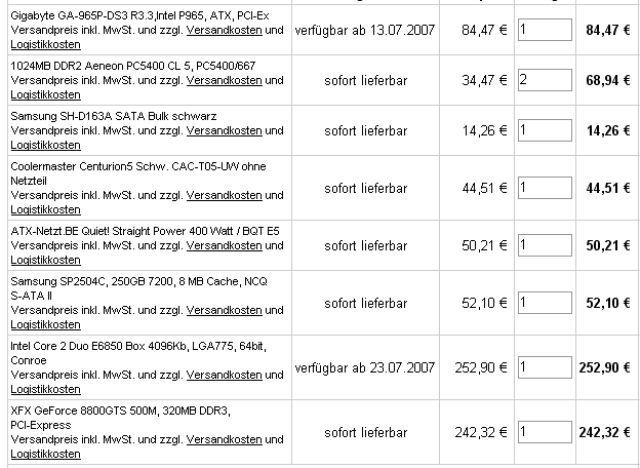 2. Die Graka: Ich habe jetzt die günstigste Geforce 8800 GTS von hardwareversand drin, die sie hatten.