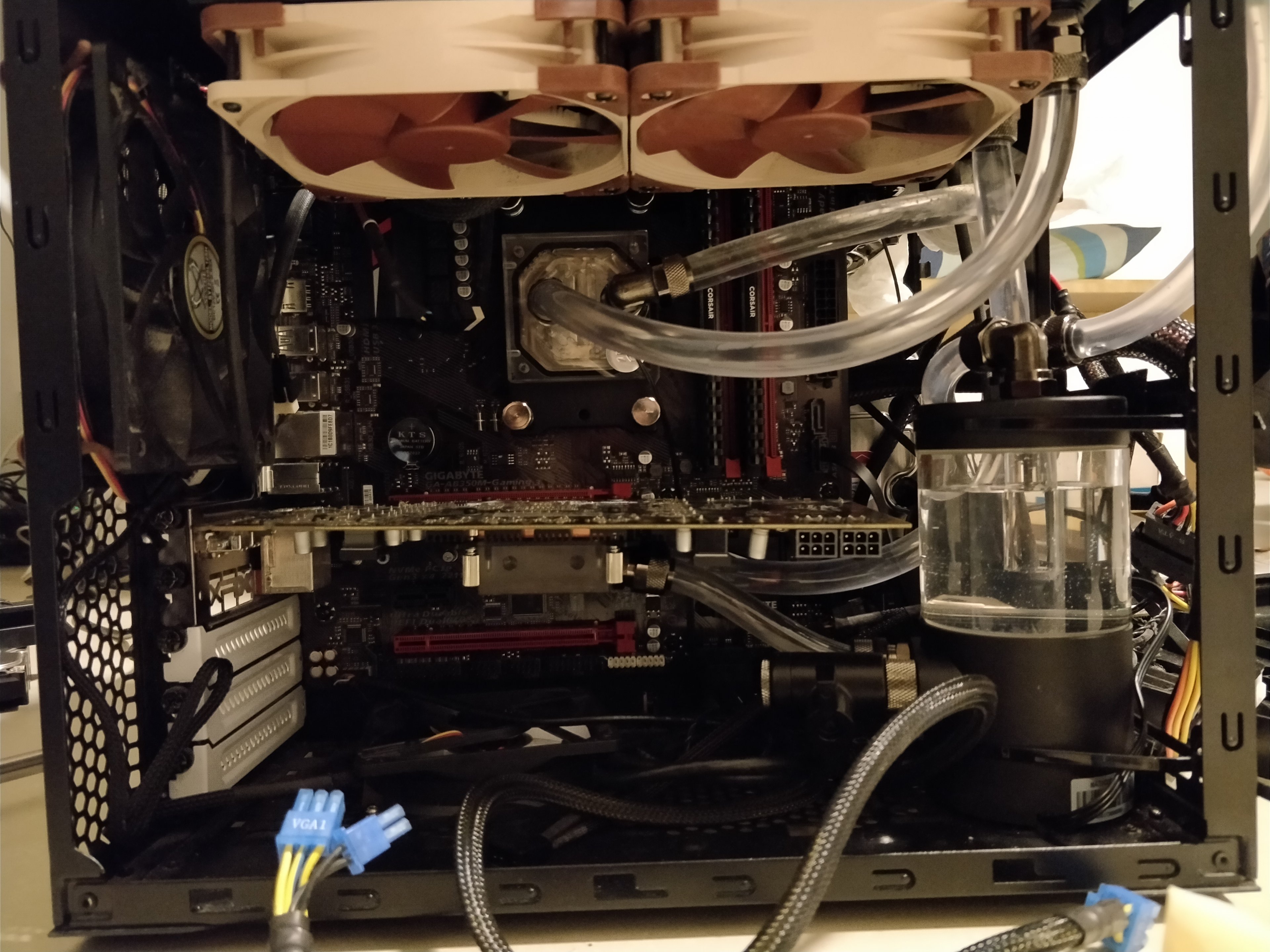 Idee 1: Eine Graka suchen die dort ins System passt. Wird Schätzungsweise schwierig dort eine gebrauchte mit umgebautem Kühler zu ergattern. (Budget würde ich hier mal mit 400€ beziffern).
