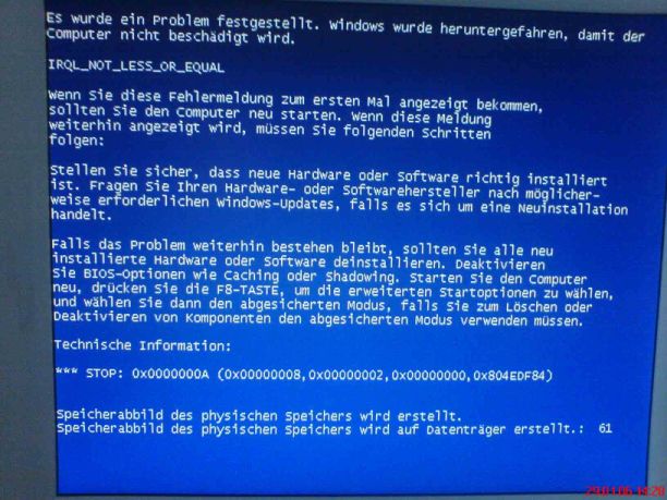 Beim Bluescreen kam einmal folgende Meldung: IRQL_NOT_LESS_OR_EQUAL
