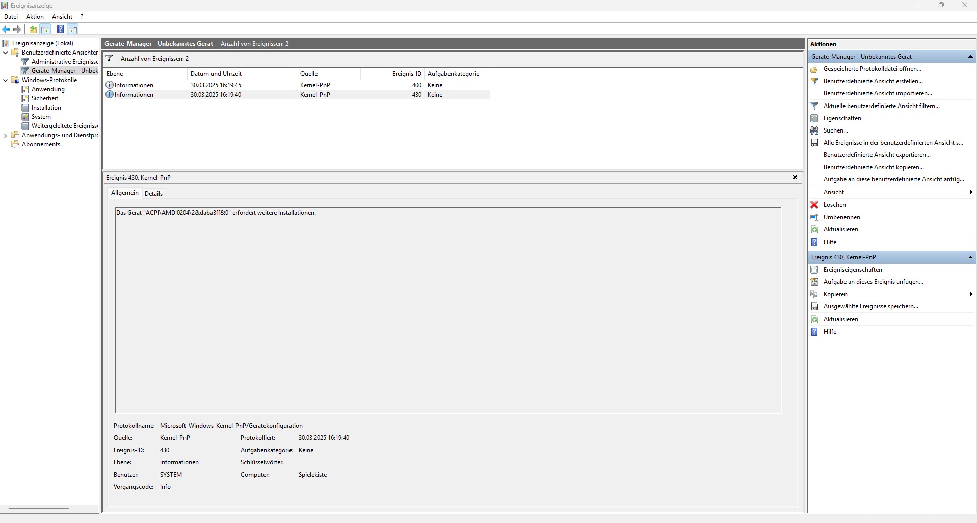 Die Ereignisanzeige von Windows habe ich mal durchgesehen und bin ganz schön erschrocken: Massenhaft Warnungen, Fehler und Kritische Ereignisse. Die meisten Fehler IDs sind: